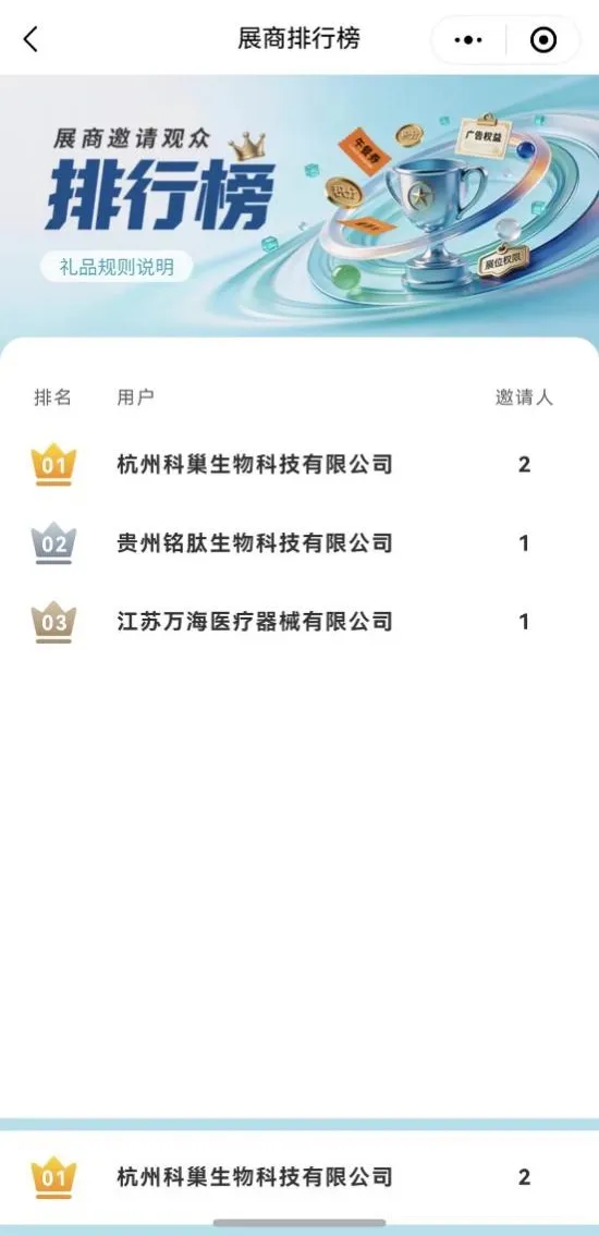 小程序数据秒同步,展商可实时查看排名,邀观效果一目了然!