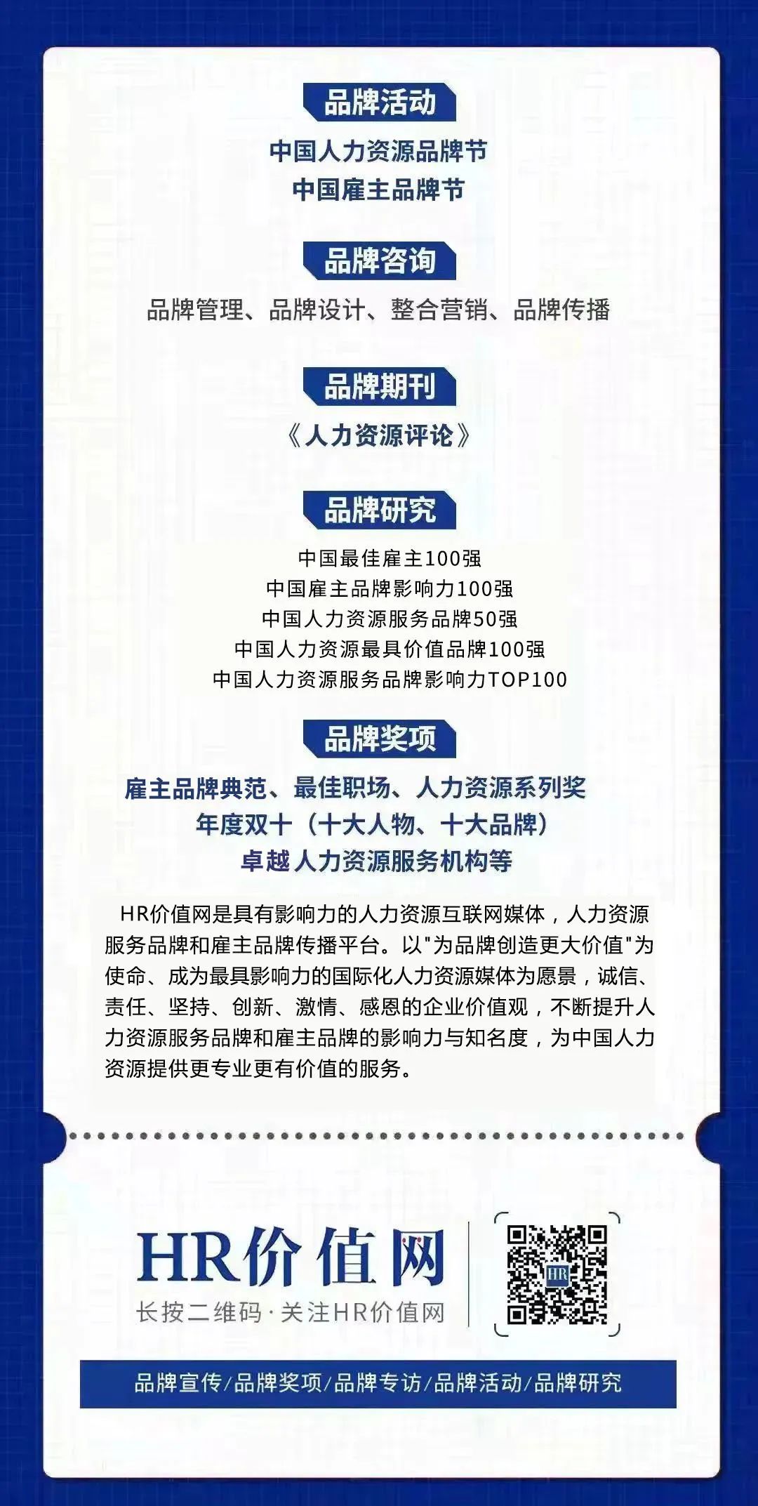 作为深耕十年人力资源领域HR价值网,一直致力于中国人力资源品牌塑造与传播,通过HR价值网的权威榜单,不断向社会和人才传递好雇主,促进社会和谐发展。