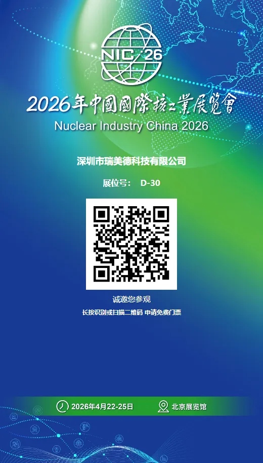 2026年4月22日至25日,第十八届中国国际核工业展览会将在北京展览馆盛大举行。由中国核学会等权威单位主办,汇聚全球核工业前沿技术与创新成果。作为核工业领域的深耕者,深圳市瑞美德科技有限公司已整装待发,携多款核心产品重磅亮相D30展位。我们诚邀您莅临交流,共同探讨核工业发展的新趋势、新机遇与新未来!