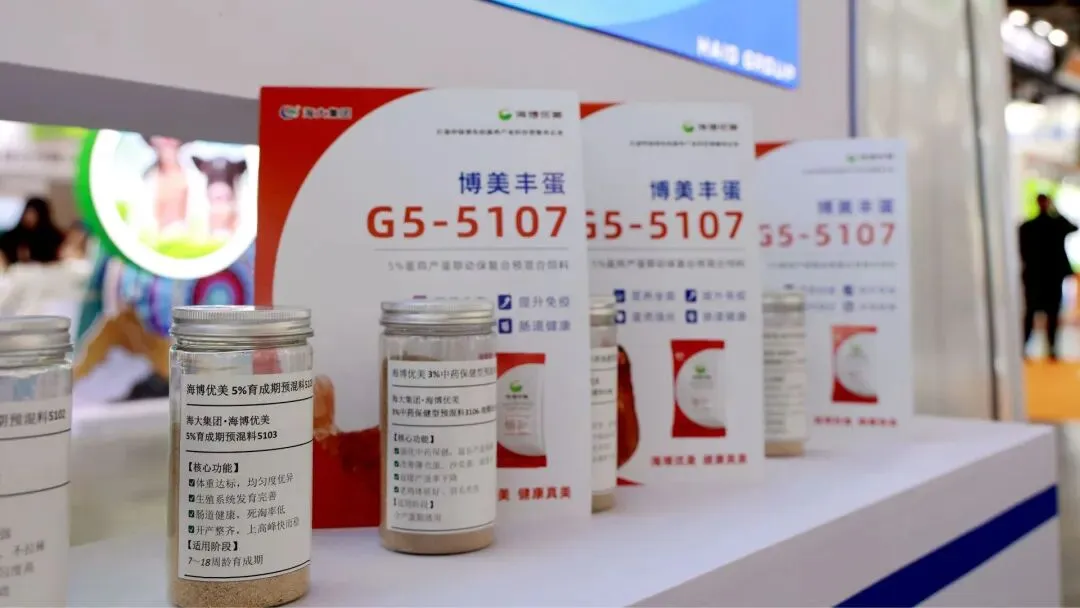 在本届展会上,海大集团旗下超60款优质饲料产品组团亮相,覆盖水产、禽、生猪、反刍全品类,养殖品种涵盖草鱼、鲤鱼、肉鸡、蛋鸡、肉鸭、生猪、鹅、牛、羊等多类养殖品种。海大集团以完整、细分的产品线全面满足不同养殖品种、不同生长阶段下的营养需求。各地养殖户、技术负责人及经销商在海大展位前驻足咨询,详细了解海大饲料的配方、优势效果与养殖效益,对海大饲料产品的精准营养配方和稳定品质给予高度评价。
