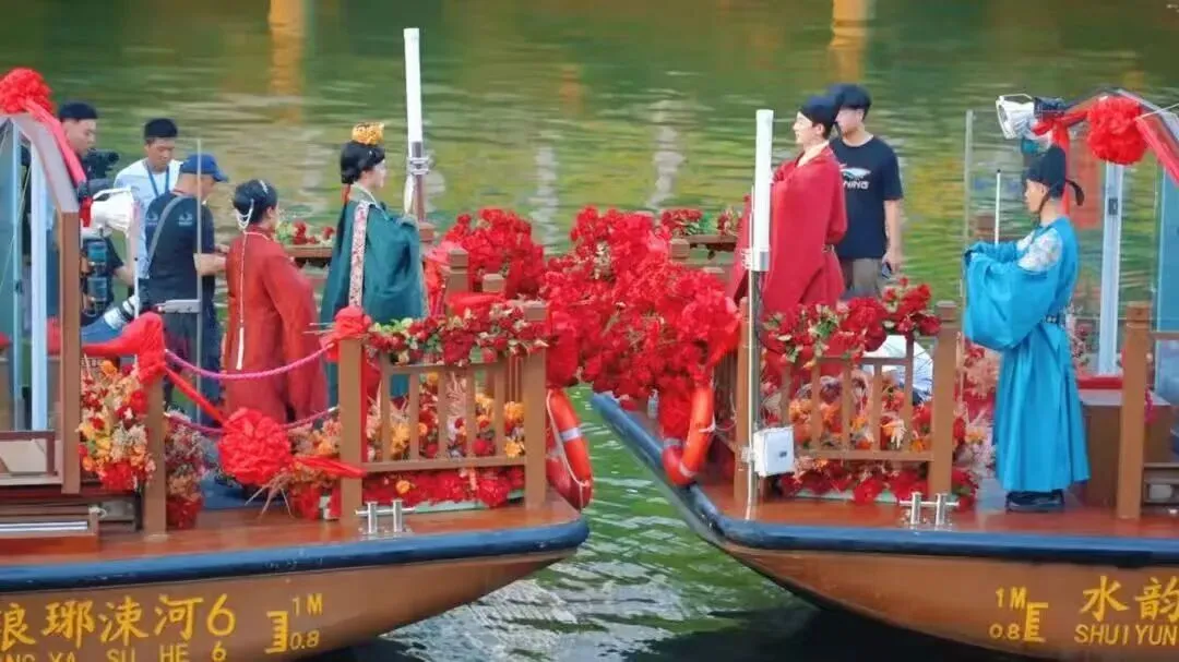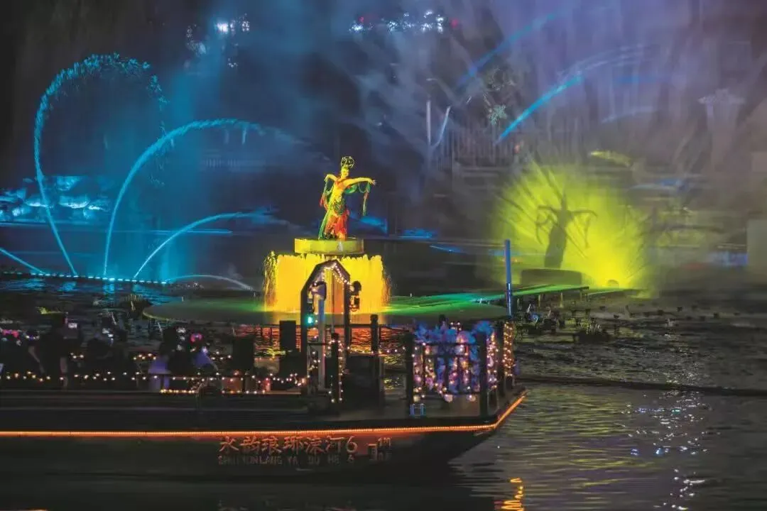 行船途中,吹着温柔的晚风,欣赏两岸错落的城市风光,静待华灯初上。当两岸灯火次第亮起,涑河的静谧与光影的璀璨交相辉映,岸边的行为艺术演艺与水中的光影秀交相呼应,真正实现“人在船中坐,船在画中游”的绝美体验,这份惬意与美好,唯有亲身感受方能体会深刻。