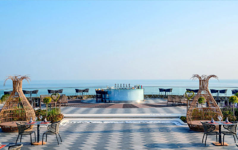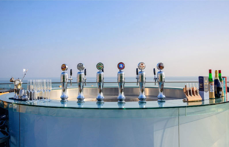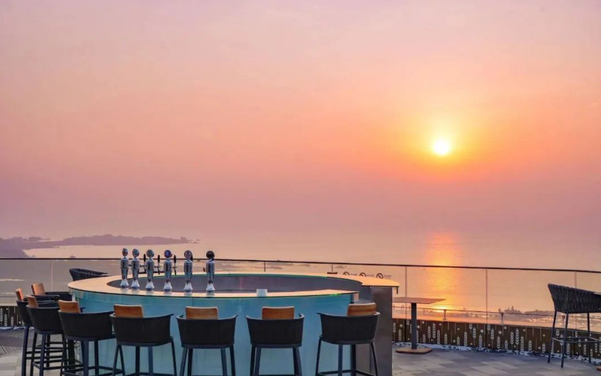 酒吧的海景视野更绝,点上一杯啤酒,可以静静地坐在这里俯瞰啤酒城的风光,又能远眺金沙滩美景,傍晚看夕阳西下。