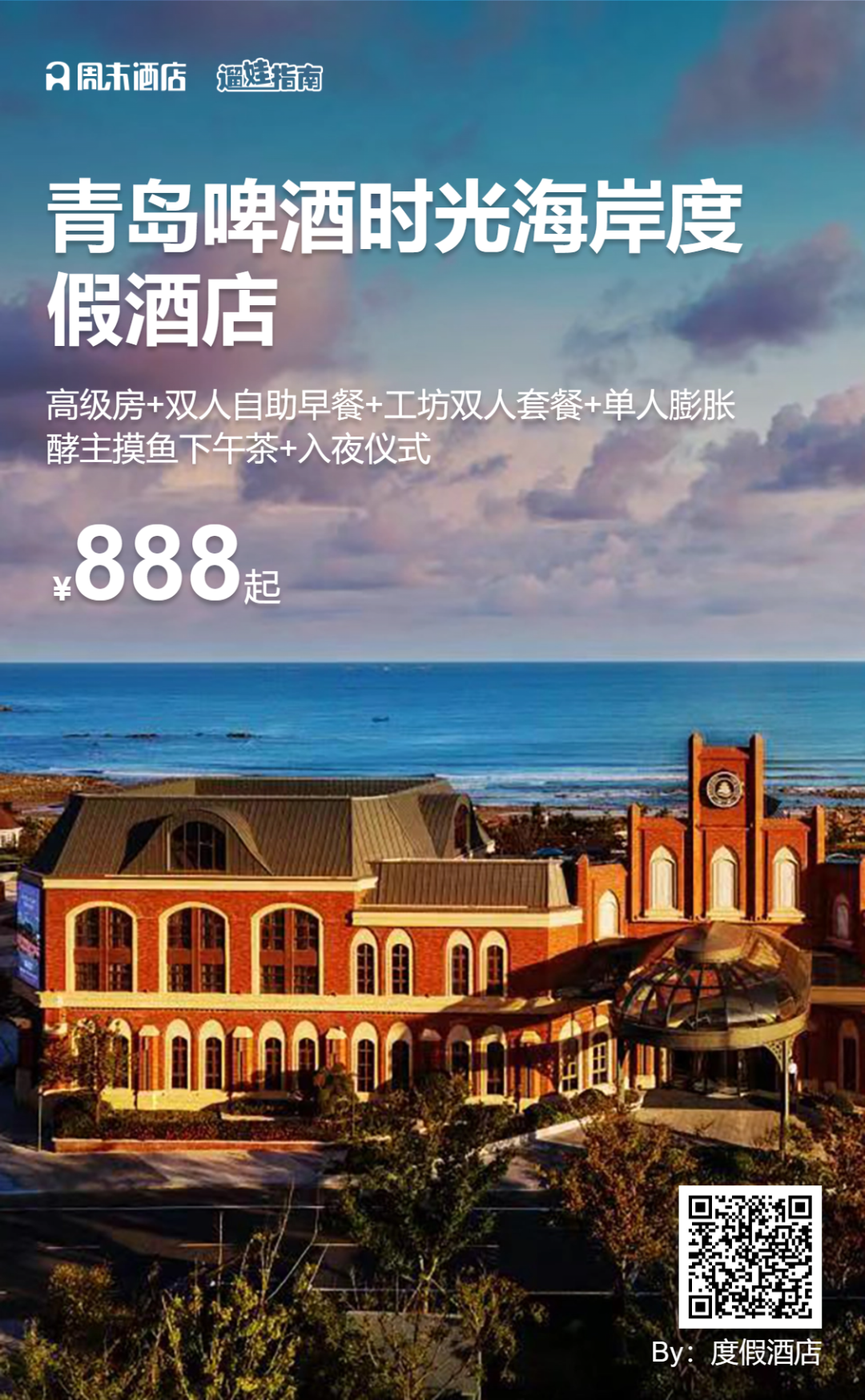 这里的一切,都围绕精酿展开:啤酒主题度假酒店、1903时光精酿工坊、威士忌俱乐部、啤酒SPA、创意烘焙、艺刻时光美学空间…啤酒厂就在餐桌旁。其中的啤酒主题度假酒店,就是青岛啤酒时光海岸度假酒店。酒店距离沙滩,80米左右。目光所及都和青岛啤酒相关。