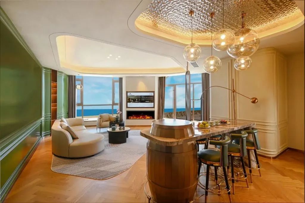 如果你住进了至尊海景套房(带观景露台,直面大海)、标准套房等,卧室里有啤酒吧台也可畅饮精酿啤酒。