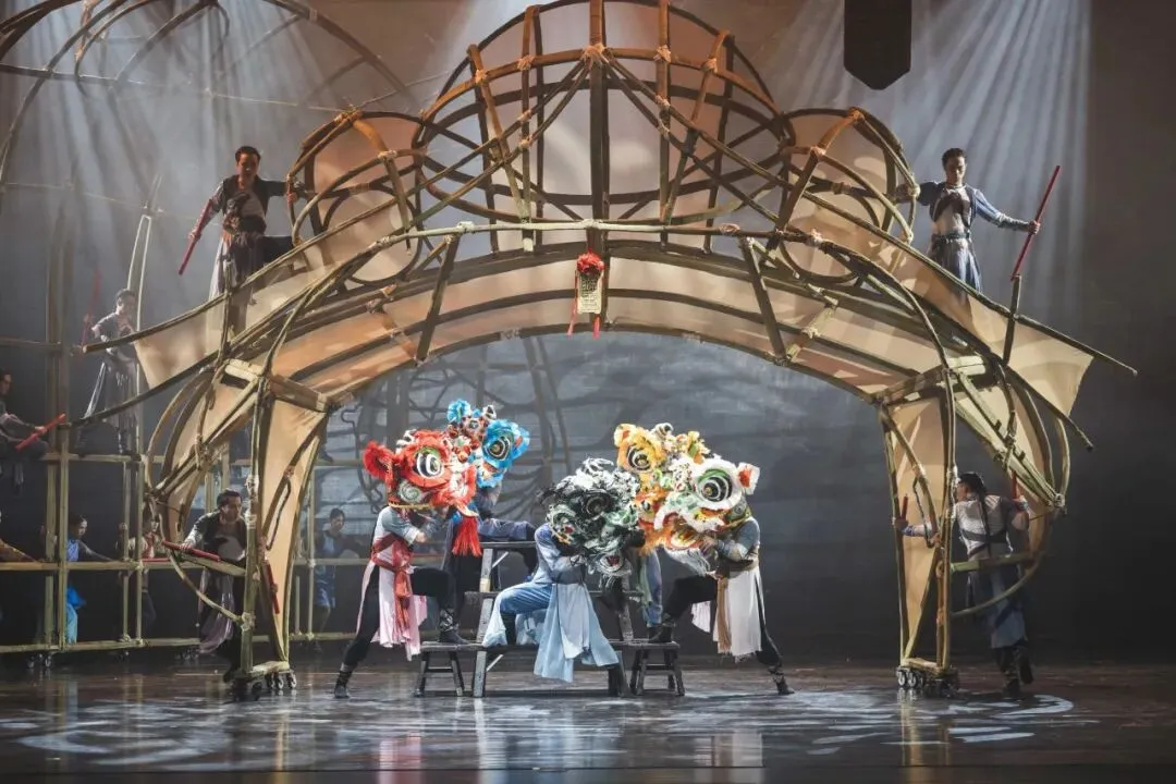 作为国内首部以国家级非遗 “广东醒狮” 为主题的舞剧,《醒·狮》以鸦片战争中三元里抗英斗争为背景,讲述两位舞狮少年从手足相争到携手抗敌的蜕变故事,展现南粤儿女的民族觉醒与抗争精神。剧目将醒狮、南拳、木鱼说唱等岭南非遗融入舞蹈语言,刚劲有力、气势磅礴,斩获中国艺术节“文华剧目奖”、中国舞蹈 “荷花奖”等多项大奖,被誉为非遗活态传承的经典典范。