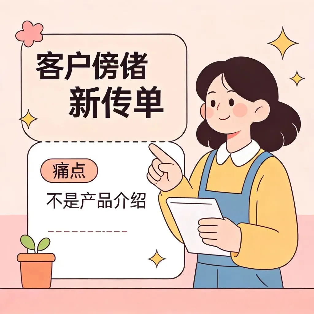 然后下次展会的时候,我就彻底改了传单的内容。这次的传单,我半个字都没提我们的产品,而是写了一行大字:“做To B的老板,这3个供应链痛点,你是不是也中招了?”