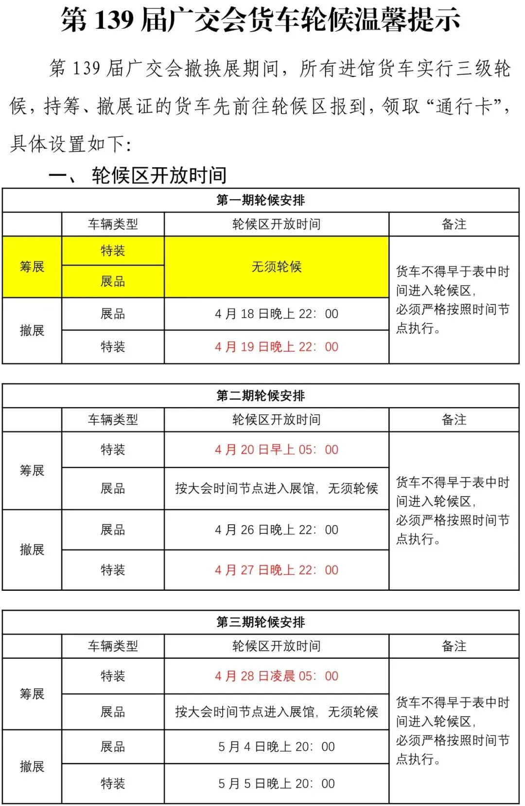第139届广交会一期今天撤展,货车轮候温馨提示:要领取“通行卡”,轮候区不收取任何费用