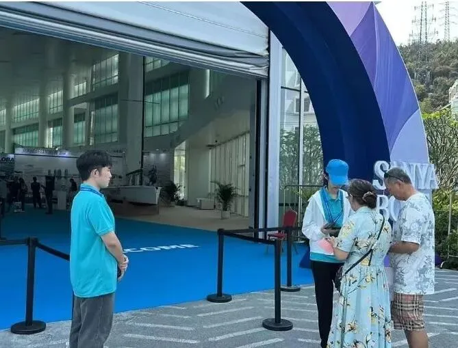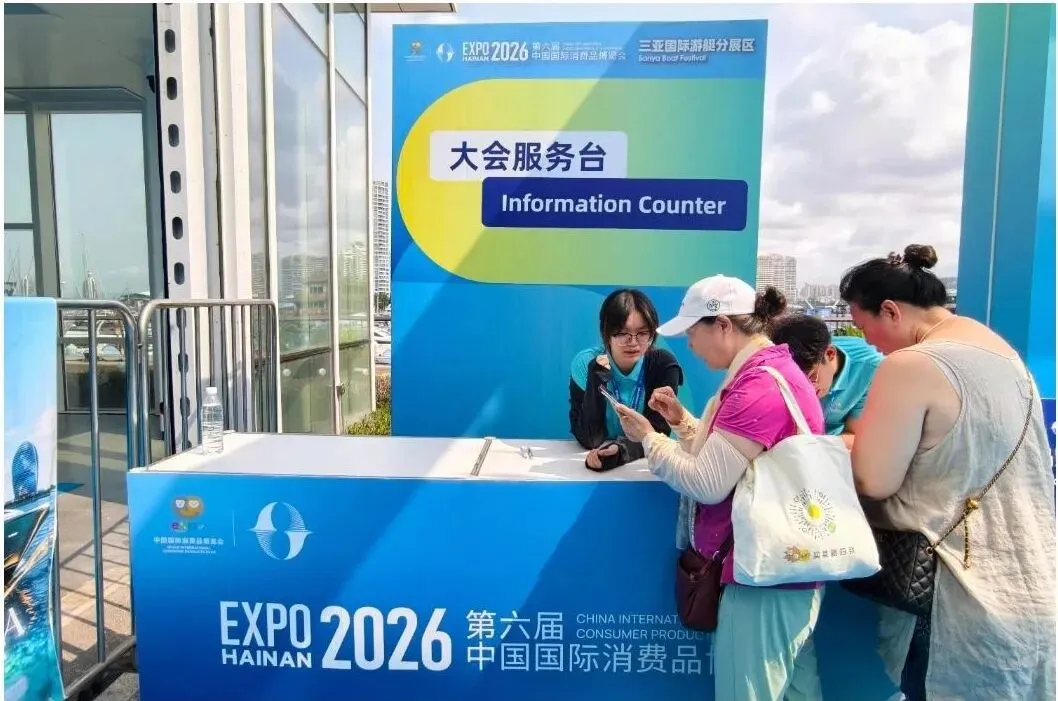 在三亚游艇、时尚生活馆等展区,“小椰青”们既做好布展陈列及配套保障,也主动为游客提供秩序引导、咨询指引等服务,用细致行动护航展会有序开展。