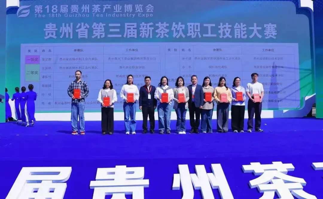 现场还公布了贵州省第三届新茶饮职工技能大赛、贵州省第三届春季斗茶大赛竞赛结果并颁奖,同步为遵义市农产品推荐官授牌、出口茶叶“大基地”揭牌。