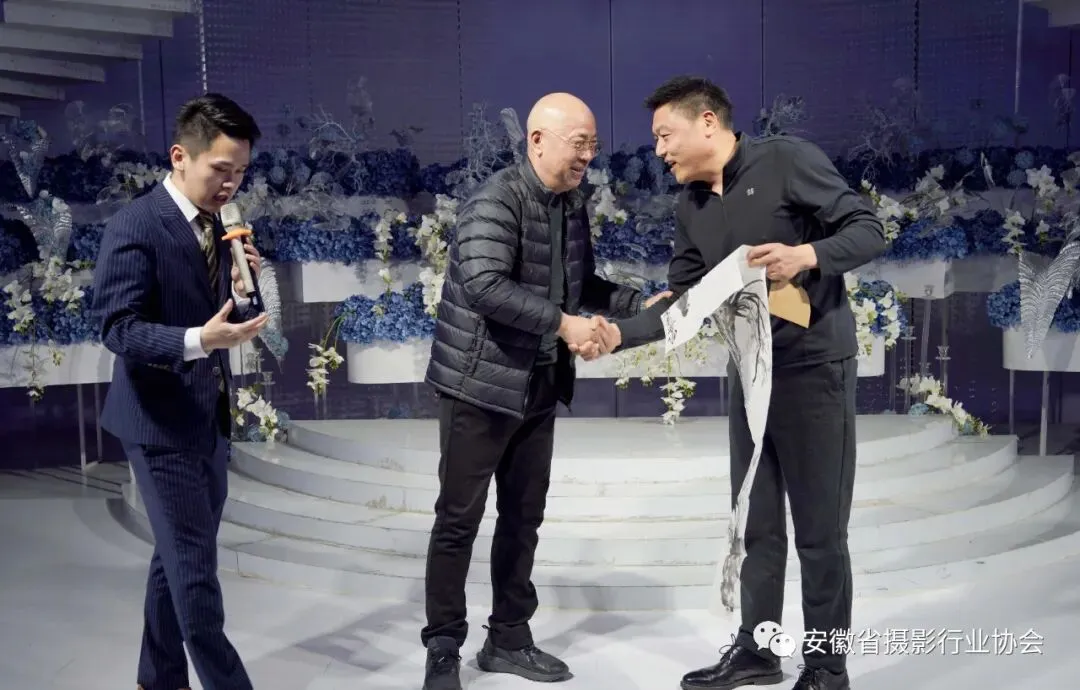 出席颁奖盛典暨授牌仪式的领导嘉宾有:安徽省委原副秘书长、办公厅主任,省摄影行业协会名誉会长杨春光,省商务厅原副厅长、省商业联合会党建指导员张光建,省商务厅服务贸易和商贸服务处处长鲁伟,省商务厅原服贸处处长、安徽省摄影行业协会党建指导员项莉,省消费者权益保护委员会秘书长吴瑞卿、主任张路明,省总工会财贸轻纺烟草工会副主席范明怀,省商务厅八大服务业协会代表——省电子电器服务业协会秘书长。省摄影行业协会会长武家增,常务副会长兼秘书长贺旭明,副会长余全、罗峰、殷建、倪谨言、付承军、冯武,协会顾问费礼、汪思棠以及理事代表和省级主流媒体等100余人参加了颁奖典礼暨授牌仪式。首先进行的是第六届安徽省摄影行业职业技能大赛颁奖典礼。 武会长为“特别支持单位”像素蛋糕AI修图负责人颁奖第六届安徽省摄影行业职业技能大赛是以“打造精湛技能铸就安徽摄影行业工匠”为主题,大力弘扬劳动光荣、技能宝贵、创造伟大的时代风尚,是安徽省内举办的赛事规格最高、参赛规模最大、技能水平最强的省级行业性职业技能盛会。大赛人才辈出、硕果颇丰,选手们在比赛中大放异彩,经过角逐,按照得分高低进行排名,各工种竞赛均评出了一、二、三等奖。充分展现了我省摄影行业现代技能人才的精湛技艺和良好的精神风貌。