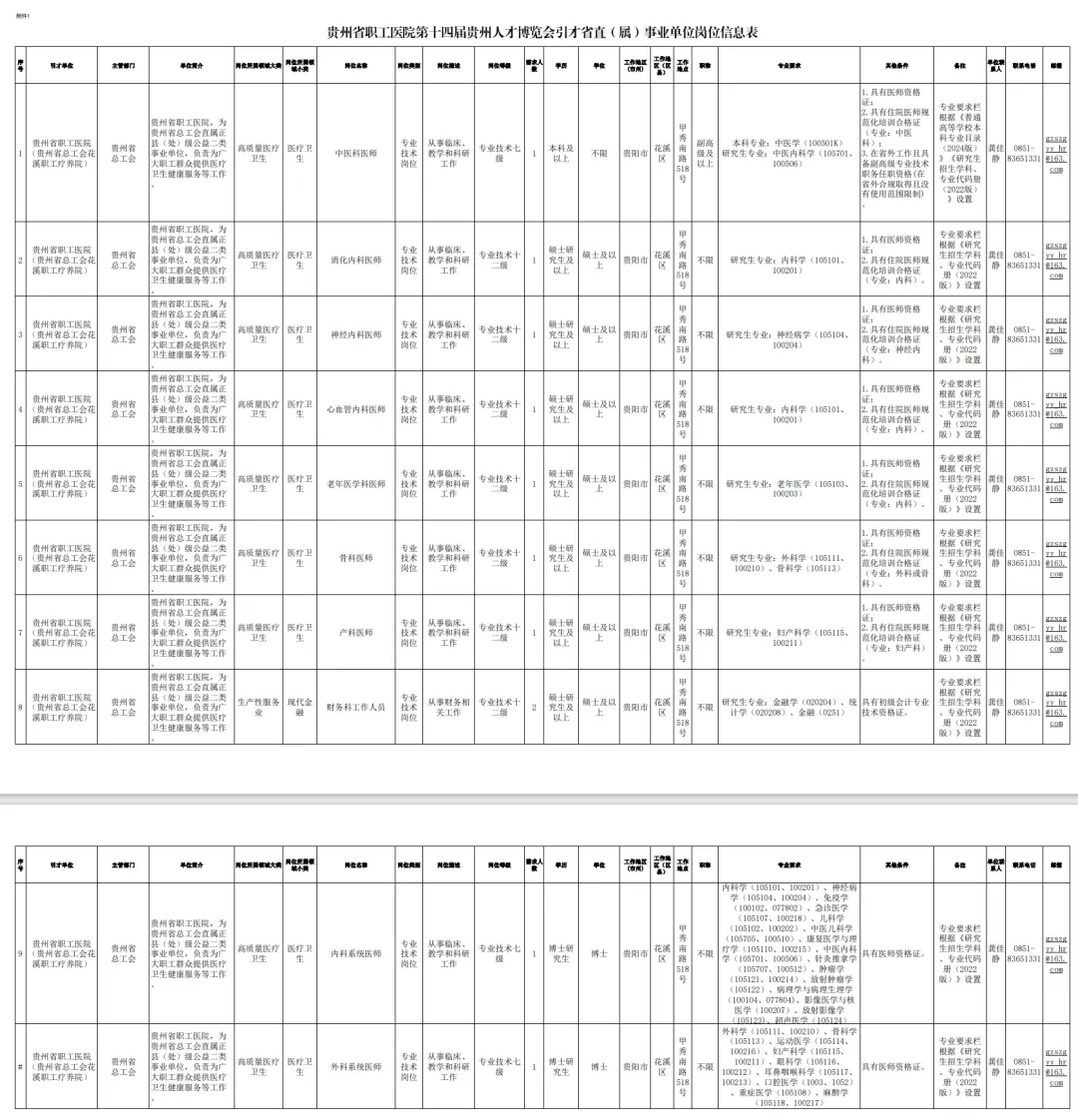 面向社会公开招聘工作人员11名,其中高层次人才2名、急需紧缺人才9名。具体招聘岗位及要求见《贵州省职工医院第十四届贵州人才博览会引才省直(属)事业单位岗位信息表》(附件1)。