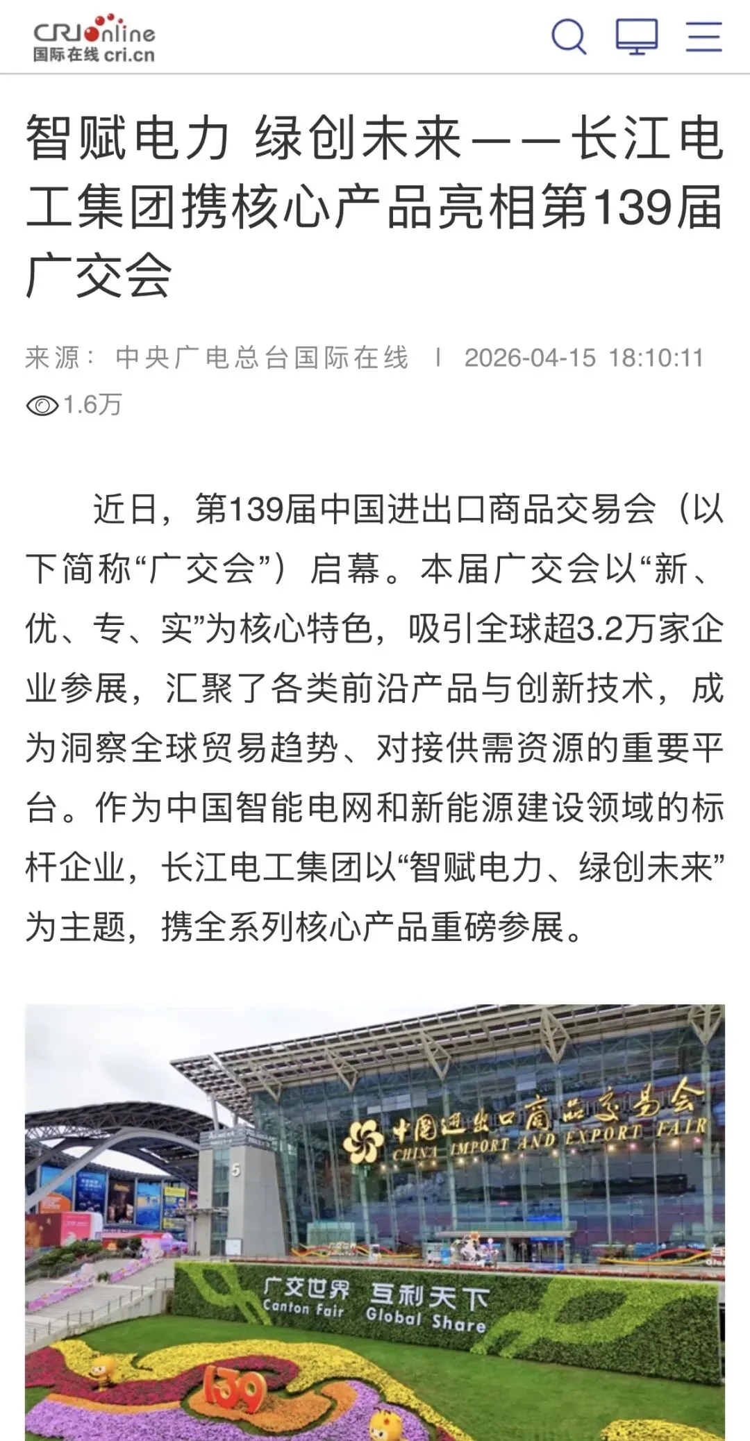 长江电工集团以“智赋电力、绿创未来”为主题携全系列核心产品重磅参展,凭借在智能电网与新能源领域的技术创新与绿色实践,吸引各央地权威媒体及政府官方平台的高度关注与聚焦报道,彰显“湖北造”新质生产力的强劲动能。