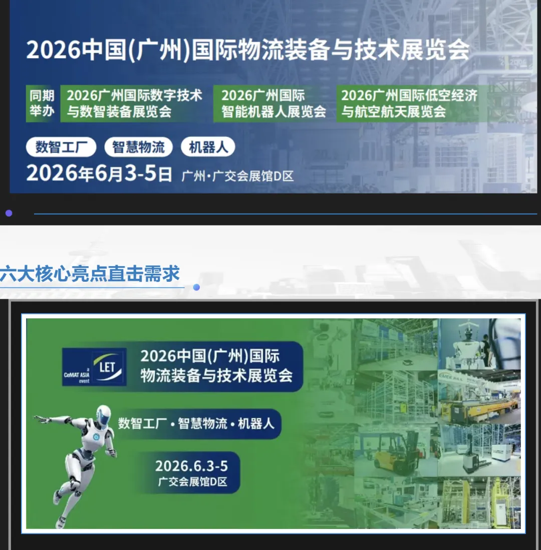 2026中国(广州)国际物流装备与技术展览会(英文名 LET-a CeMAT ASIA event),于2026年6月3日-5日(周三至周五)在广州·中国进出口商品交易会展馆D区盛大举办。