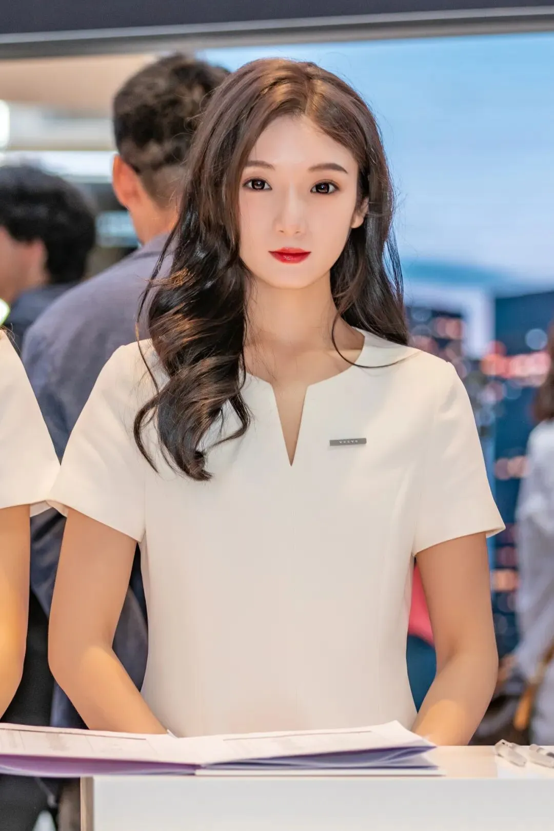 沃尔沃展台的小姐姐们颜值各有特色,配上统一的披肩长卷发以及白色制服,EX30的性价比都显得更高了!