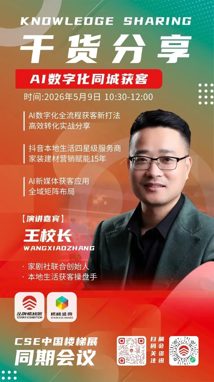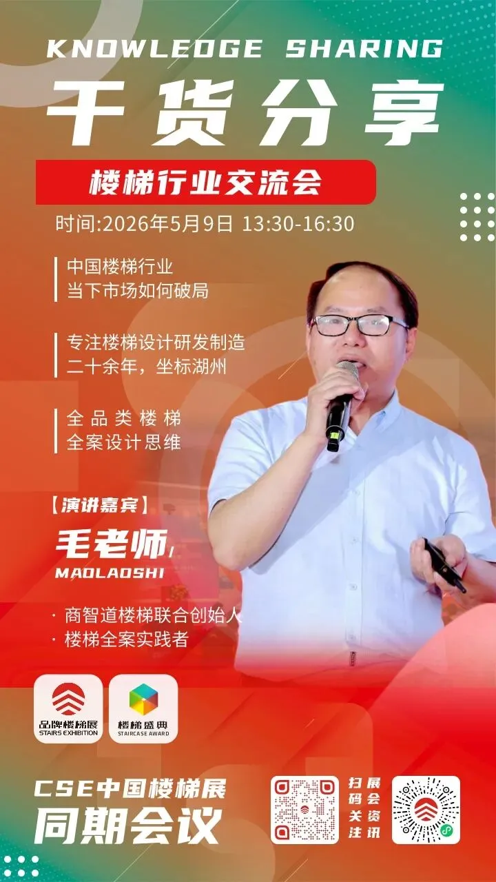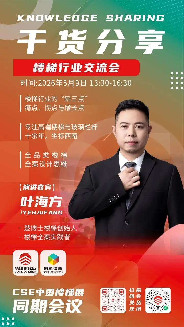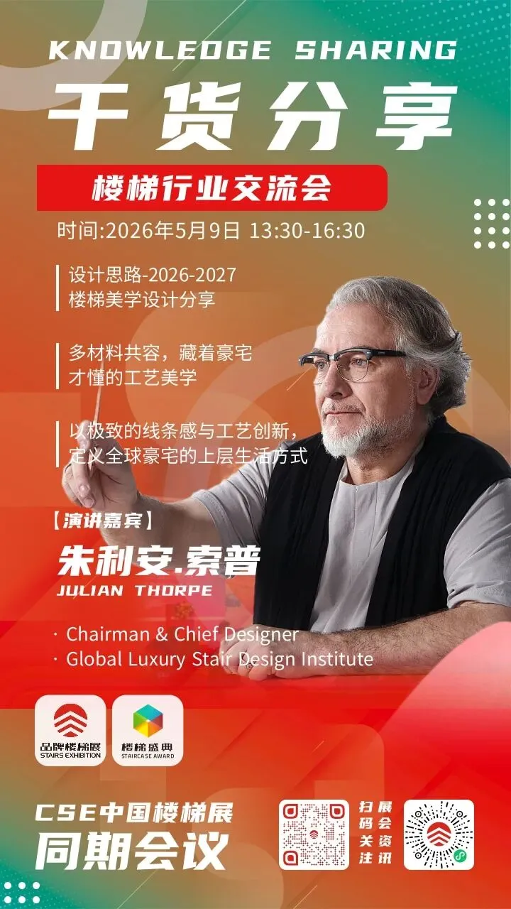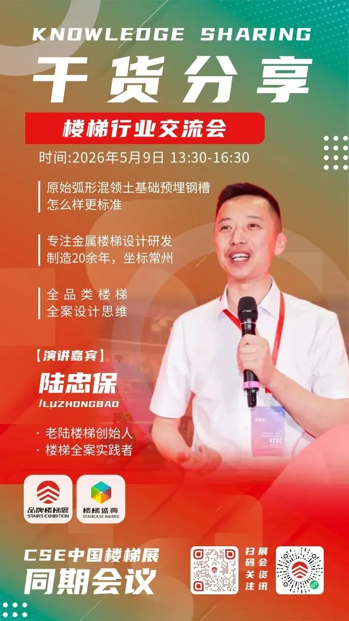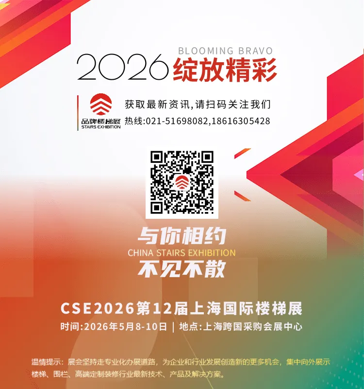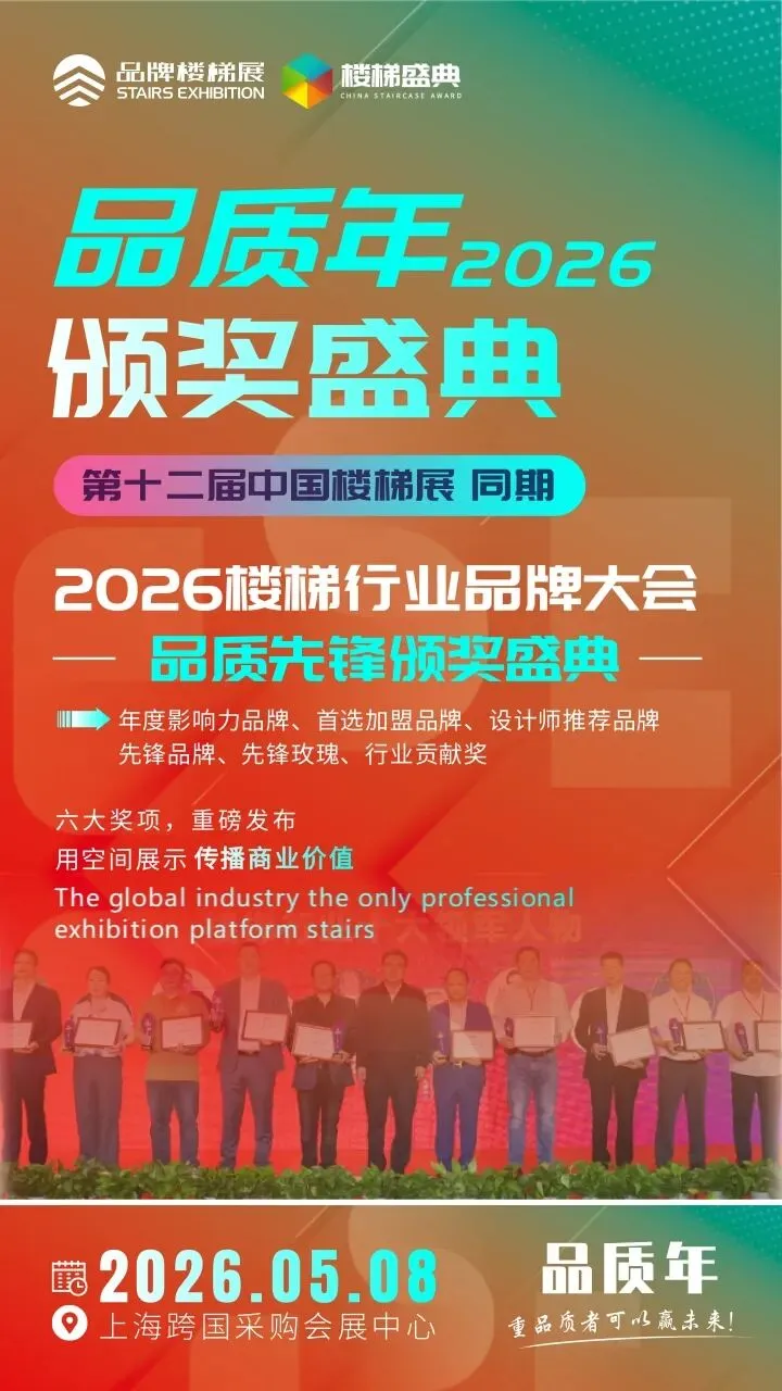 品质年,2026年5月8-10日,CSE第十二届中国楼梯展&CSBC中国楼梯行业品牌大会.品质先锋颁奖盛典将在上海继续盛大举行。作为楼梯产业链及垂直空间服务上下游品牌提供集交流对话、新品展示、招商加盟等高效合作平台,2026年,全新打造线上线下双线展示、内外贸循环发力的行业高质量发展第一展!