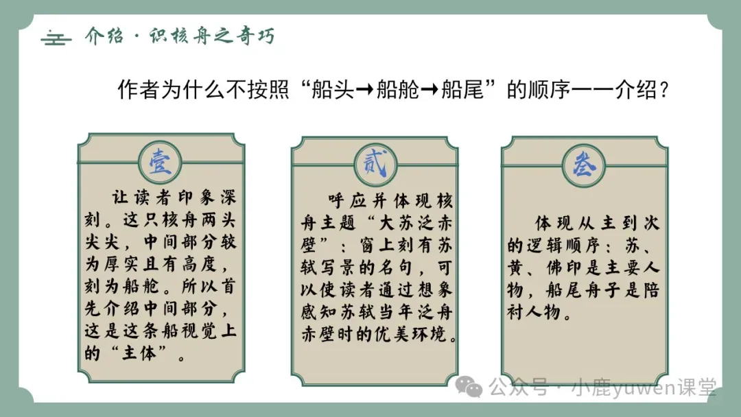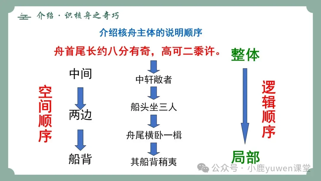 ❤整体把握,理清说明顺序,感受核舟之奇巧。(重点)