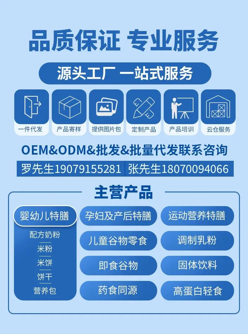 咨询对接:张洪光 18070094066 / 张海斌 13307085188随着母婴消费升级浪潮来袭,婴幼儿米饼凭借易消化、营养均衡、适配抓握需求等优势,迅速成为辅食赛道的爆款品类,也带动婴幼儿米饼OEM代加工模式迎来爆发式增长。对于想要布局婴幼儿辅食市场的投资方或品牌方而言,选择一家靠谱的OEM代加工厂家是成功的核心关键——它直接决定了产品的品质稳定性、品牌口碑塑造,甚至后续的市场拓展空间。今天,我们就为大家推荐一家在婴幼儿辅食领域经验丰富、技术理念先进、业内口碑极佳的专业代加工厂家。代工产品:婴幼儿米饼、羊奶米饼及其他婴幼儿谷物辅助食品金薄金品牌始创于1995年,最初以婴幼儿奶粉等营养食品经销为核心业务,凭借扎实的产品品质与贴心服务,一度成为江西省内规模最大的奶粉经销商。2003年5月,江西金薄金生态科技有限公司正式注册成立,总部坐落于有着“江西名镇”美誉的高安市八景镇,开启了自主研发与生产的全新征程。历经二十九年的创新发展,金薄金已成长为一家集自主研发、规模化生产、严格检验于一体的国家级高新技术企业。公司拥有4个符合GMP标准的现代化生产车间、数十条全自动智能化生产线,年产能突破万吨,是国内少数具备“全产品链”生产能力的营养食品企业之一。其产品覆盖范围广泛,包括婴幼儿辅食、特殊膳食用食品(孕妇及乳母营养补充食品、运动营养食品等)、调制奶粉、特色乳制品、固体饮料、压片糖果、饼干、方便食品及膨化食品等多个品类,能够满足合作伙伴多元化的代工需求。金薄金配备了专业的生产调度中心、研发中心与检验中心,拥有一支由食品研发、检验检测、质量安全等领域资深专家组成的技术团队。公司长期与中国营养学会、南昌大学中德联合研究院等国内顶尖科研机构开展深度合作,率先提出“营养数字化、能量结构化”等前沿研发理念,并将其全面应用于全系列产品的研发与生产中。截至目前,公司累计申报发明专利、实用新型专利及软件著作权30余项,发表专业技术论文20余篇,科研成果涵盖精确配料、标准化定量投料、营养成分均匀添加、高精度营养检测等多个核心领域,为产品品质提供了坚实的技术支撑。金薄金始终立足长远发展,坚持科技创新与数字化转型。早在2011年,公司就率先引入“食品生产质量监控及溯源系统”,实现了生产过程的实时监控;随后又陆续开发并应用了“ERP全过程物料与成本管理系统”“精确配料电子系统”“产品信息追溯系统”“食品安全电子信息追溯系统”“金薄金湯伯膳食管理系统”等一系列数字化管理工具,覆盖了从产品研发、原料采购、生产加工、质量检验到成品出库的全流程,真正实现了从原料到终端消费者的闭环管控,确保每一款产品的品质可追溯、安全有保障。金薄金始终秉承“好原料造好产品”的核心发展理念,以“全员参与,生产顾客满意产品;持续改进,提高产品质量”为食品安全管理方针,先后通过了ISO9001质量管理体系、食品HACCP体系、乳制品GMP体系、安全生产标准化等多项权威管理体系认证,荣获“标准化良好行为AAA企业”“江西省专精特新企业”“国家高新技术企业”“脱贫攻坚爱心帮扶企业”等多项荣誉称号;同时,公司还取得了有机产品认证、美国FDA乳制品认证等国际级产品认证证书,产品品质得到国内外市场的广泛认可。1995年,创立金薄金品牌,主营婴幼儿奶粉等营养食品经销业务,凭借优质产品与贴心服务迅速崛起,一度成为江西省内规模最大的奶粉经销商。2003年,江西金薄金生态科技有限公司正式注册成立,在国内率先提出“好原料造好产品,打造A+级工厂”的发展目标。2004年,国家质检总局抽检金薄金全系列产品,所有检测结果全部合格;2007年,荣获“标准化良好行为AAA企业”称号;2008年,在全国“三聚氰胺”食品安全事件中,金薄金婴幼儿奶粉产品全部检测合格,是国内为数不多的100%合格企业之一;2009年,首次通过“ISO9001:2008”质量管理体系认证;2011年,成立专业食品质量检验中心,配备婴幼儿奶粉全项目检验设备,首批引入“食品生产质量监控及溯源系统”;同年,首次通过“乳制品HACCP”“乳制品GMP”管理体系认证。2012年,通过“诚信CMS”管理体系认证;自主设计并应用江西省食品生产加工行业首个“精确配料电子系统”,同步上线“ERP全过程物料与成本管理系统”,正式迈开“数字化工厂、智能化制造”的转型步伐。2013年,上线并启用“金薄金产品信息追溯系统”,为每一款产品赋予唯一的身份识别码,实现食品安全信息全程可追溯。2014年,顺利通过当时被称为“史上最严”的婴幼儿配方奶粉生产许可审核,彰显了公司过硬的生产实力与质量管控水平;2015年,获评“江西省专精特新企业”,标志着公司在专业化、精细化、特色化、新颖化发展道路上取得重要突破;2016年,开发并启用全新“食品安全电子信息追溯系统”,产品追溯功能全面升级,进一步强化了全流程质量管控;2017年,自主设计并发布“湯伯膳食云”APP,依托大数据与营养学算法,能够针对不同体质的婴幼儿提供个性化的系统性营养学分析,并给出科学的喂哺方案;同年,率先提出“营养数字化,能量结构化,结构化营养”的创新理念,开创了“数字化营养”大健康食品的新时代。2018年,通过“安全生产标准化”评定,获评“脱贫攻坚爱心帮扶企业”“
