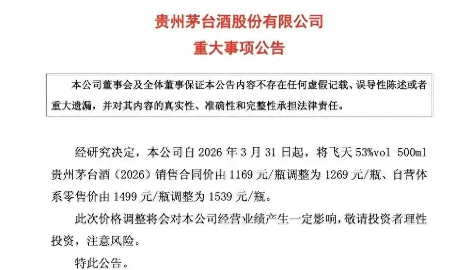 此外,53度飞天茅台在“i茅台”平台上始终“开售即罄”。即便在今年3月31日逆市宣布涨价(从1499元升至1539元)后,依然保持了这一状态,足见其牢固的品牌地位。这甚至为茅台后续业绩提供了一定确定性——据招商证券测算,此次提价预计为2026全年带来34亿元收入增长,对盈利预测正向贡献约2.3%。