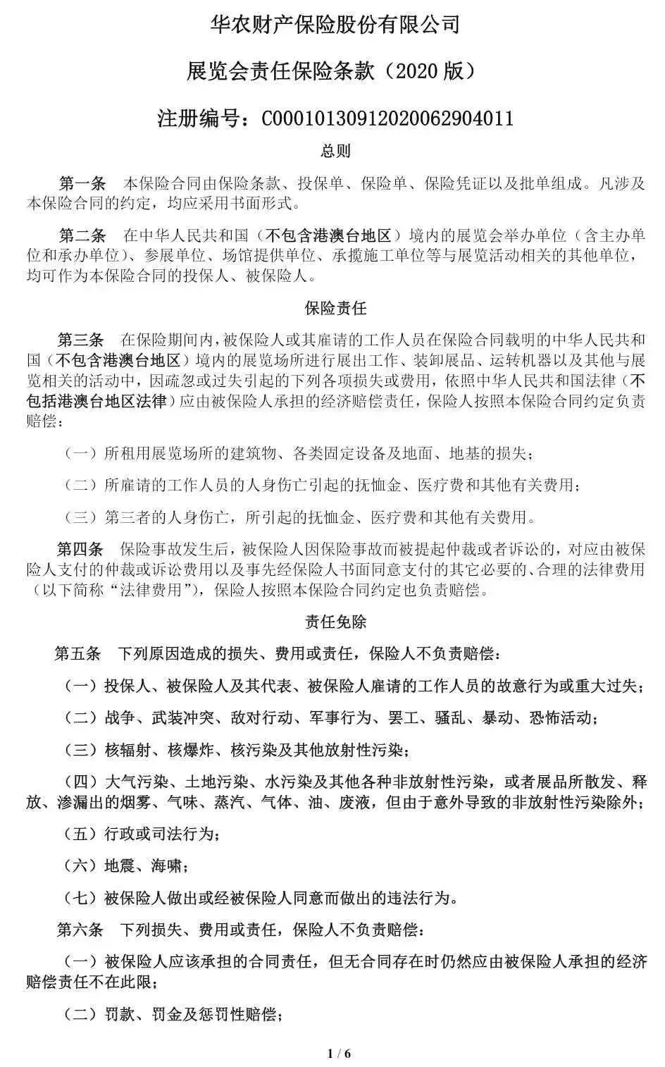 (8)本保单的承保区域包括本次展览会场馆的全部工作及活动区域。
