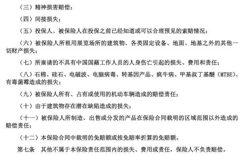 (7)本保单保险责任范围包括“在展览场所进行搭拆展台以及其他与展览相关的活动”。