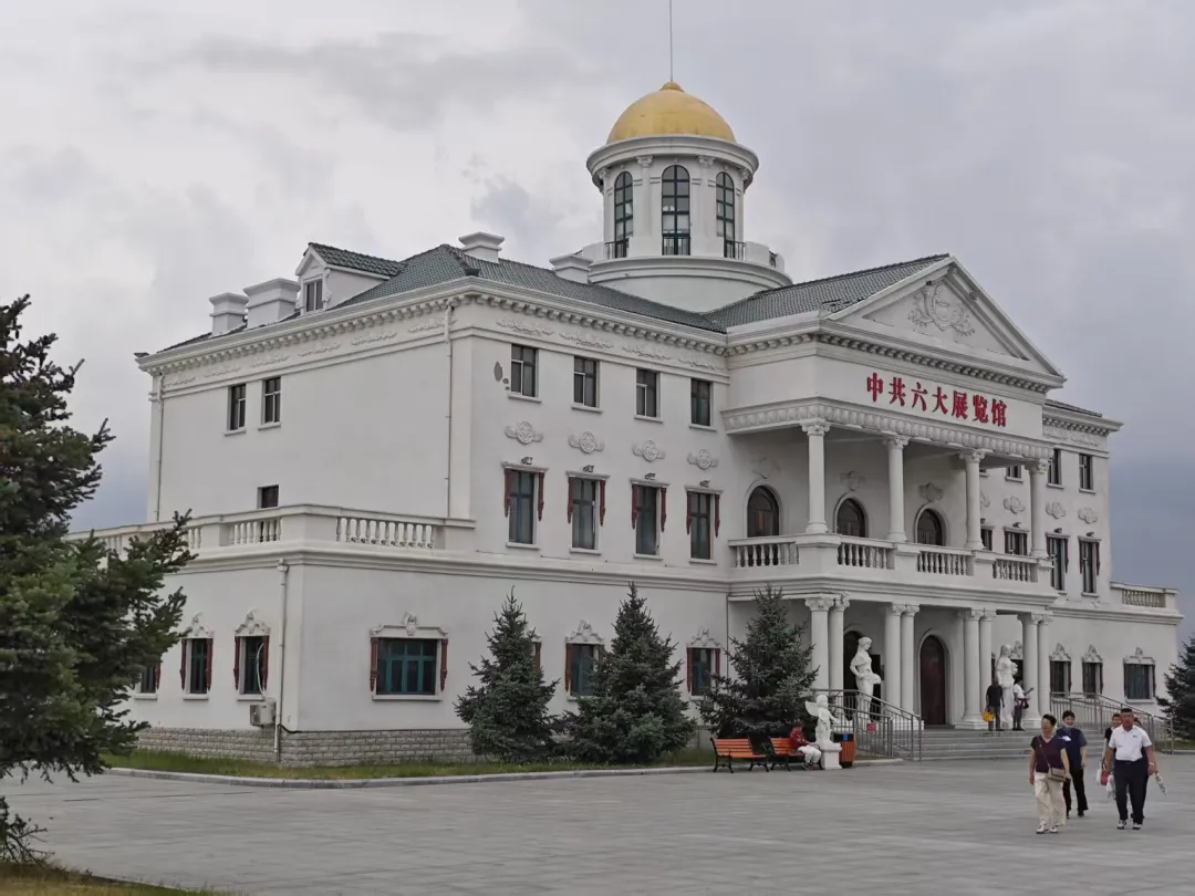 (中共六大展览馆是满洲里国门景区核心红色旅游景点,是按1928年6月18日至7月1日六大召开地——莫斯科近郊五一村“银色别墅”复原建筑的。因这是中共唯一一次在国外召开的全国代表大会,面对1927年大革命失败后极端恶劣的形势,具有不寻常的战略意义。)