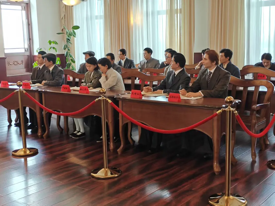 (中共六大主会场代表听取报告复原场景(局部),生动再现了当时的会议氛围。全体代表一个共同特点都是朝气蓬勃的年轻人。他们满怀革命理想,聚集这里寻求如何将马列主义运用于中国革命的斗争实际,为中华民族解放而奋斗的强烈使命感凝结在激情荡漾的脸上,如同一团团烈火燃烧在心中。展陈回忆史料谈及参加六大,依旧十分激动。)