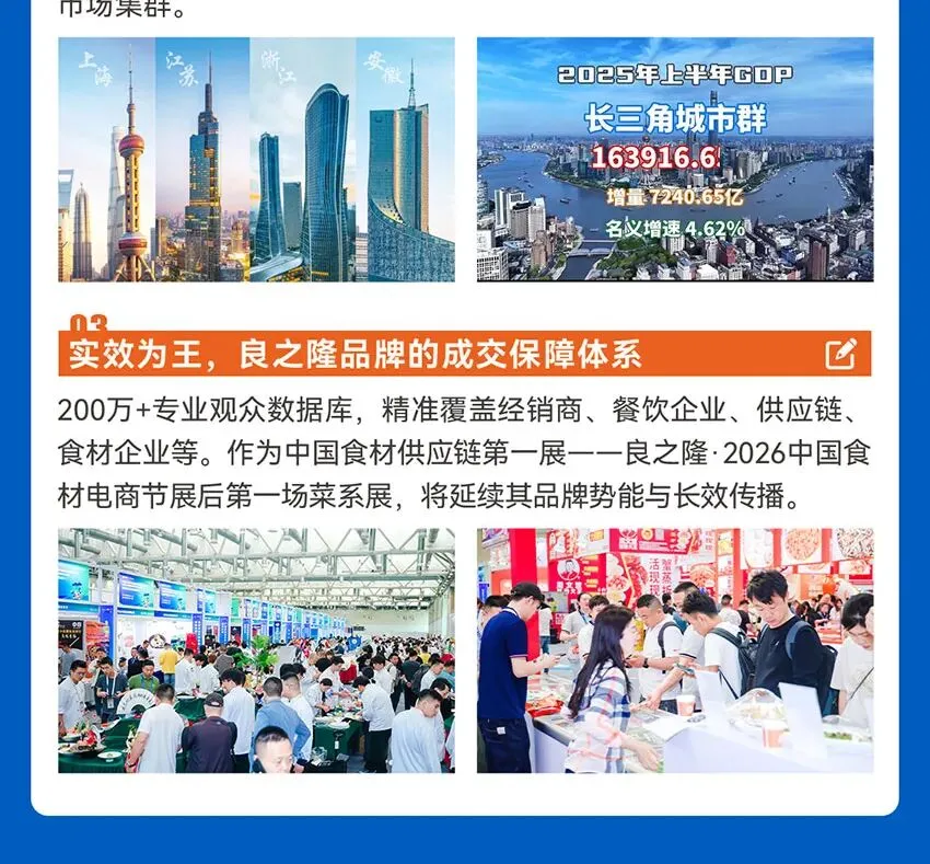 内容:汇聚华东食材流通渠道超200+位优秀商家,通过精准对接,重塑供应链价值,掀起一场提效增速的供需匹配效率革命,携手战略伙伴共赢未来。