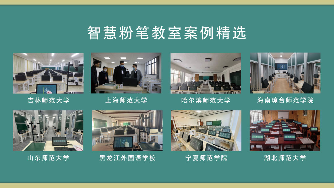 华文众合全国首创推出的智慧粉笔教室结合历代智慧书法教室的亮点,针对国内师范院校的三笔字教学需求,还原了“老师在讲台授课、学生在座位上学习”的常规课堂场景;通过交互式粉笔临摹台的专利技术,让学生用普通粉笔即可直接在临摹屏上书写,还原了粉笔书写的体验。