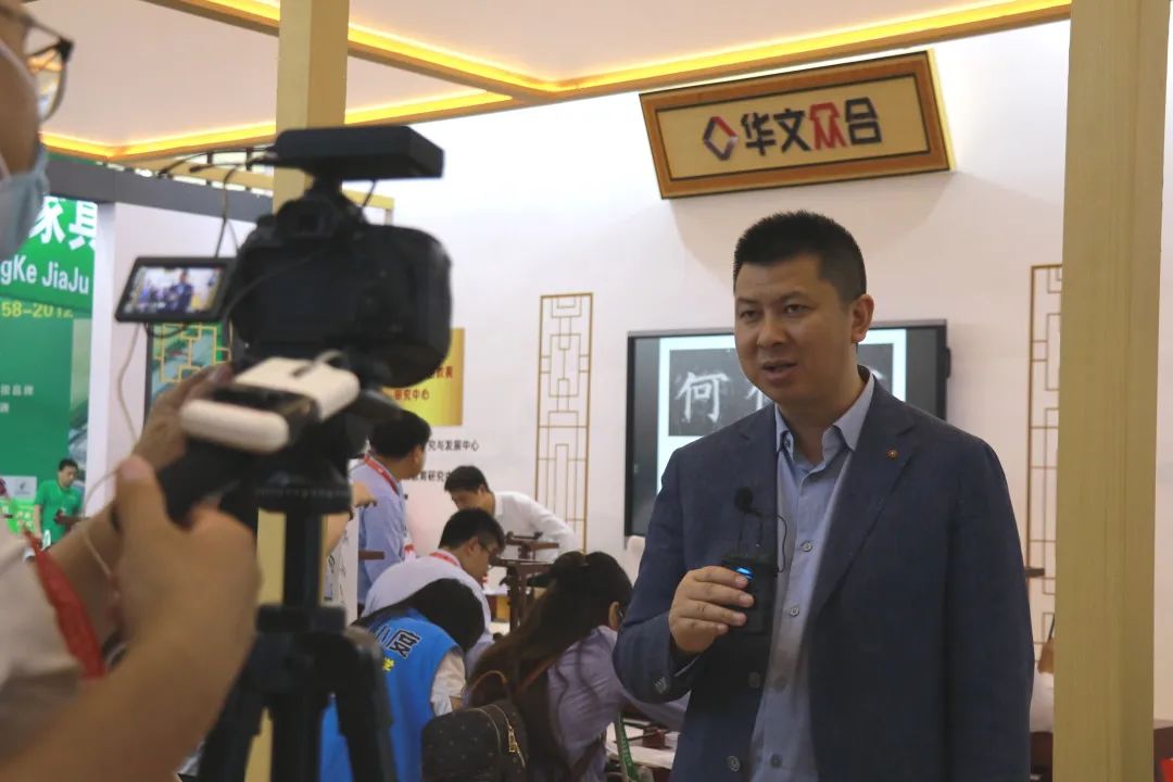 华文众合展位吸引媒体采访报道