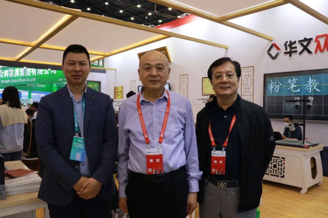 河北省教育厅装备中心主任郭晋宝(右一)、河北省教育装备行业协会会长郭国维(左二)莅临指导