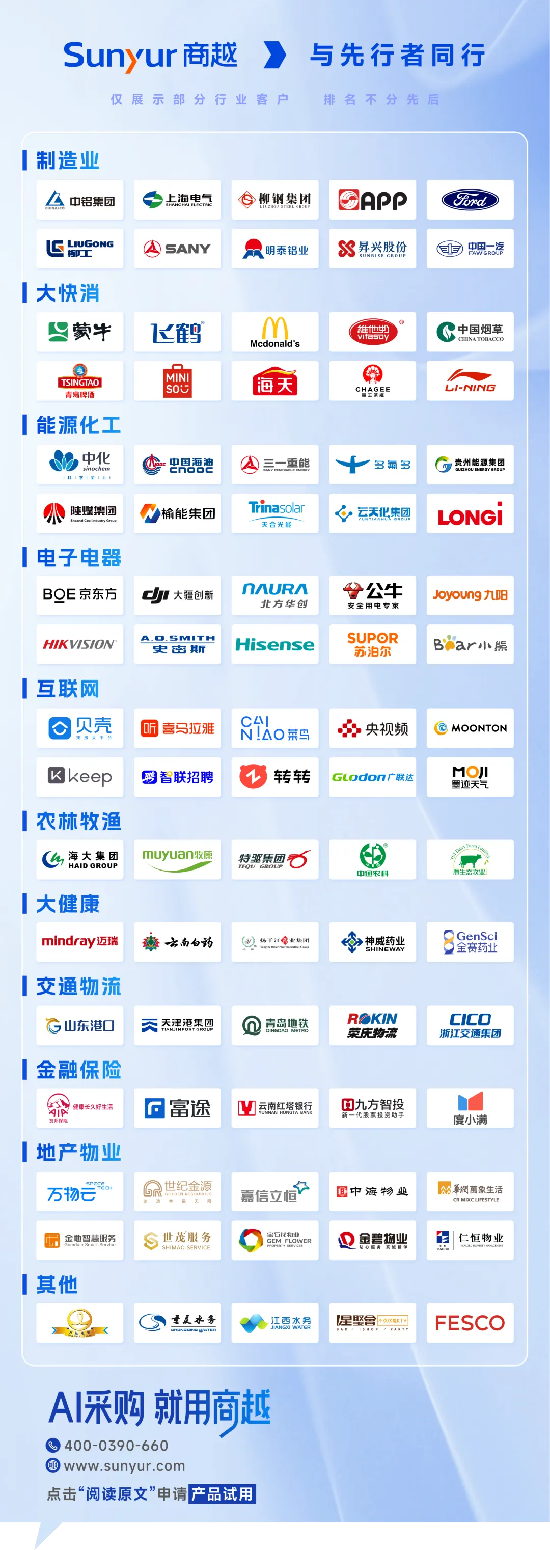 作为专注百亿级营收企业采购数字化的服务商,商越科技已为数百家行业头部企业提供服务,帮助客户实现采购降本增效。在AI原生实践中,商越构建的智能采购平台,覆盖寻源、库存、交易、结算全流程,为企业采购提供AI决策支持,破解了大型企业采购链路长、风控难、决策效率低的痛点。