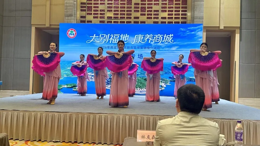 推介会上,民俗文艺节目轮番上演,尽展商城文化魅力。独具韵味的商城民歌《对花》质朴悠扬,唱出大别山区的田园风情与生活气息;舞蹈《谁不说俺家乡好》热情奔放,抒发对家乡山水的由衷赞美;商城民歌《茶妹子》清甜婉转,生动呈现茶乡采茶的诗意场景;省级非遗火绫子《最美还是商城县》压轴登场,节奏明快、表演诙谐,将现场气氛推向高潮,赢得全场阵阵掌声。