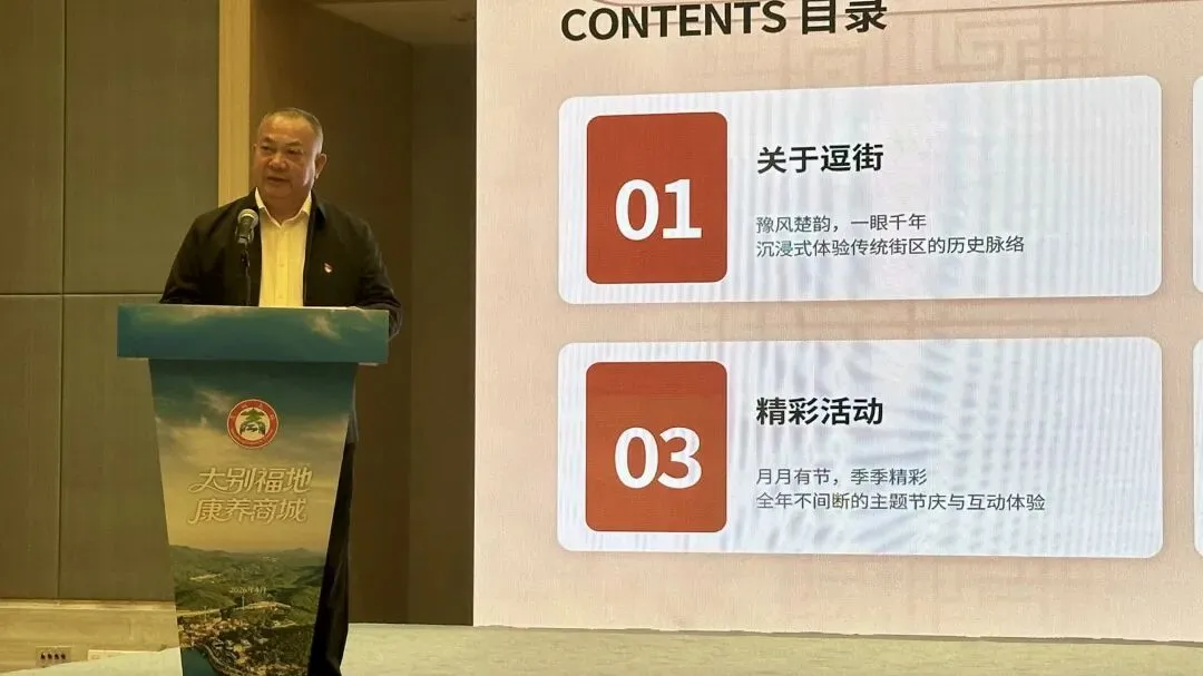 在企业推介环节,茗阳汤泉运营副总经理陈丽、平安驿逗街副总经理李建刚、商城县伏山卧龙湾旅游公司董事长李虎先后登台,分别介绍温泉康养、民俗街区、乡村旅游等特色业态与产品,让南阳文旅业界全面了解商城旅游核心资源与优质体验项目。