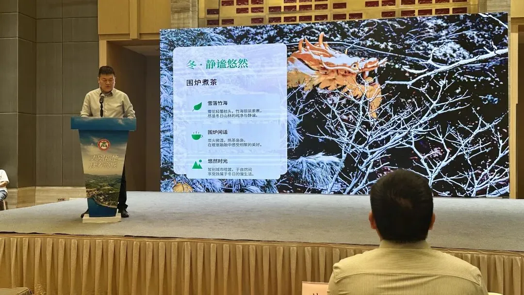 商城县文化广电和旅游局党组书记、局长林友森作主旨推介,以“大别福地,康养商城”“原味商城,泉茶歌乡”为核心,系统介绍商城五张重量级文旅名片,生动描绘大别山腹地的文旅画卷。林友森局长介绍,商城地处鄂豫皖三省交界、大别山腹地,文旅资源得天独厚,概括为“一首红歌、一池温泉、一桌炖菜、一处氧吧、一杯高山茶”。