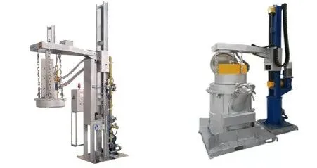 (二)应用行业及优势 1.铝熔铸与铝铸造行业:在铝熔铸和铝铸造的生产流程中,铝液需要通过输送流槽从一个设备转移到另一个设备。海德热工的铝液输送流槽能够保证铝液的顺畅输送,减少热量损失和铝液的氧化 。例如,在大型铝型材的生产中,铝液需要从熔炼炉经过输送流槽输送到挤压机的保温炉中,流槽的良好性能确保了铝液在输送过程中的温度稳定和质量不受影响,为后续的挤压成型提供了优质的铝液 。 2.优势总结 减少热损失:流槽盖和特殊材料的使用,大幅减少了铝液在输送过程中的热量损失,保证了铝液的温度和流动性 。 防止铝液氧化:与铝液不浸润的特性,减少了铝液与流槽材料的接触反应,降低了铝液的氧化程度,提高了铝液的质量 。 可定制性强:可根据客户的不同生产需求,加配流槽加热装置等,满足个性化的生产工艺要求 。五、烤包器(一)产品介绍