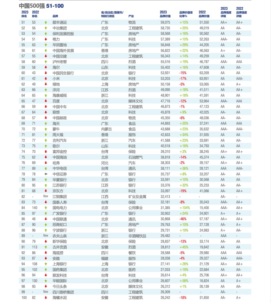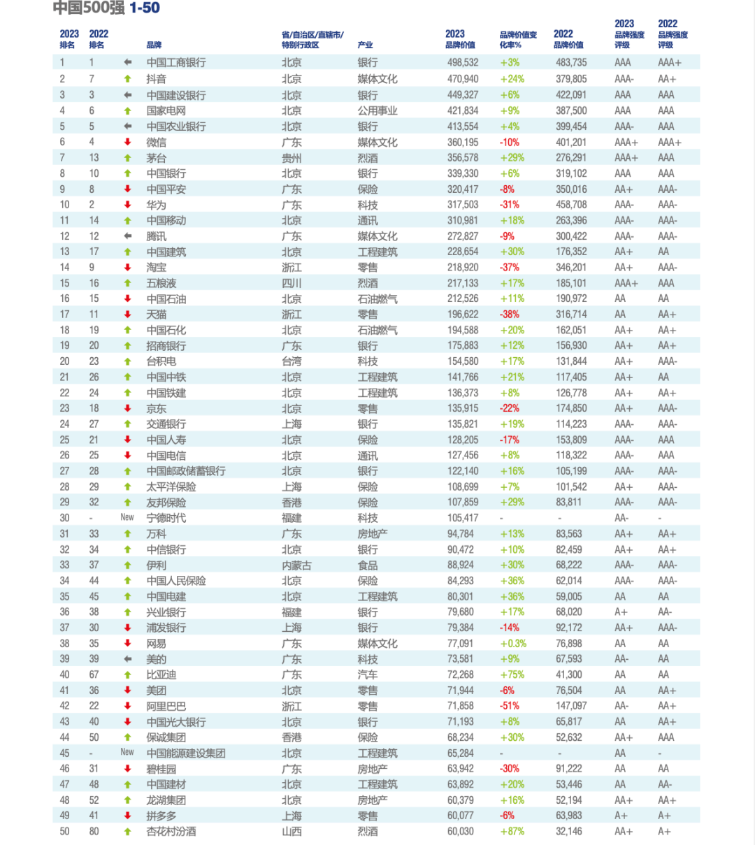 近日,英国品牌评估机构“品牌金融”(Brand Finance)发布了《2023年度中国品牌价值500强榜单》,品牌总价值达到人民币130158亿元。