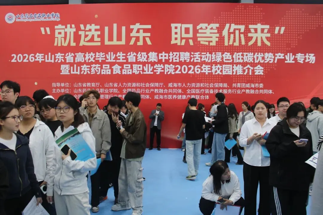 为搭建校企对接桥梁,助力毕业生高质量就业,4月19日,"就选山东,职等你来"2026年山东省高校毕业生省级集中招聘绿色低碳优势产业专场暨山东药品食品职业学院2026年校园推介会圆满举行。