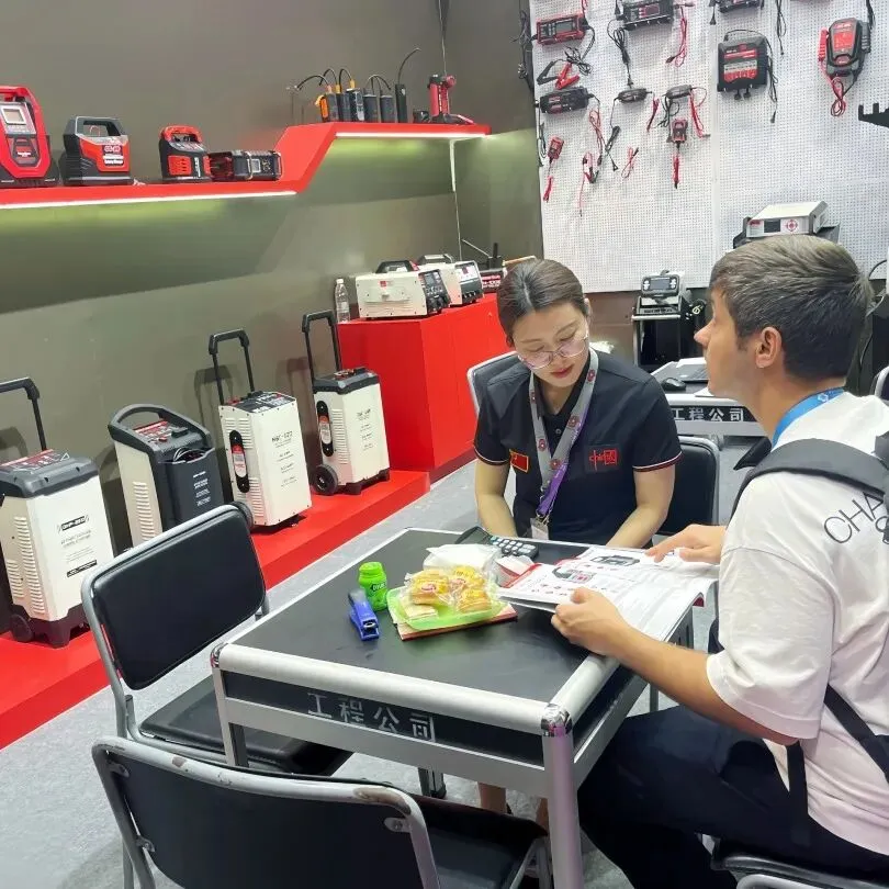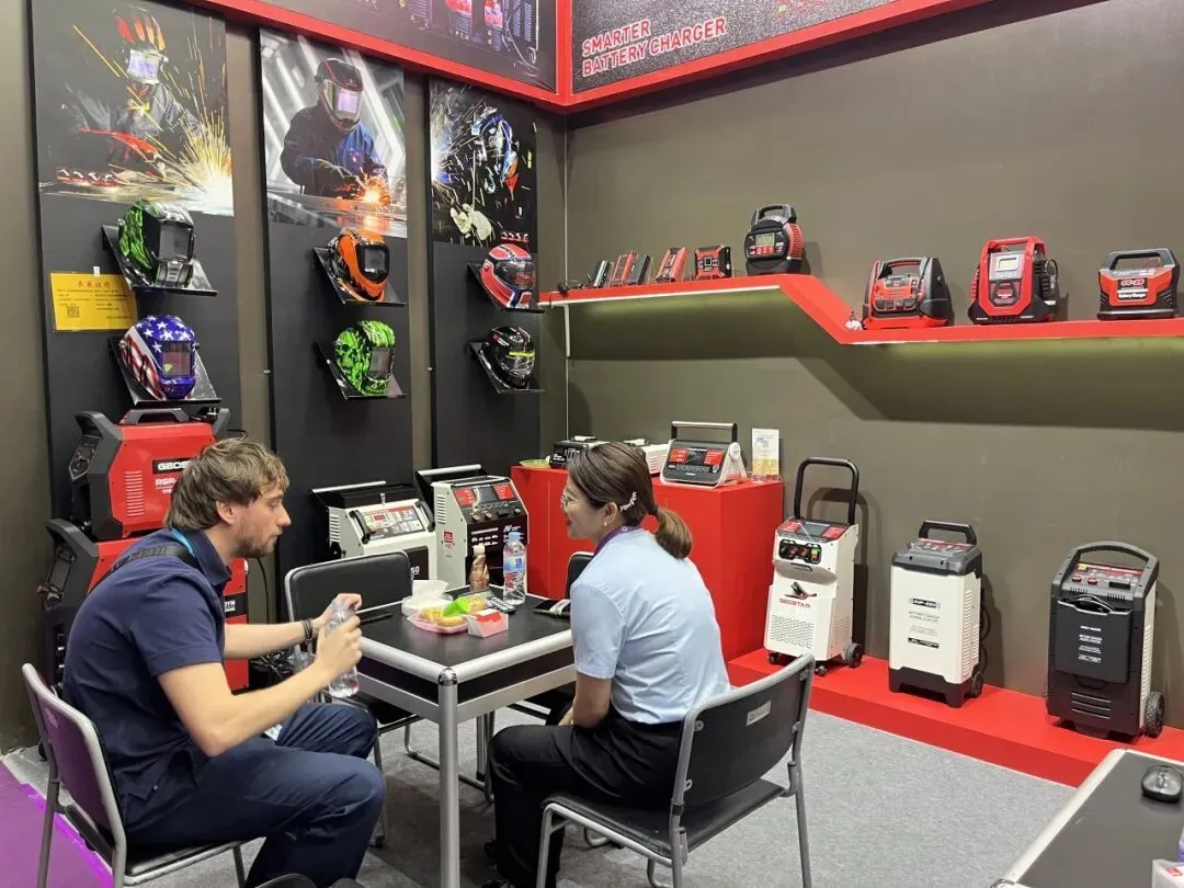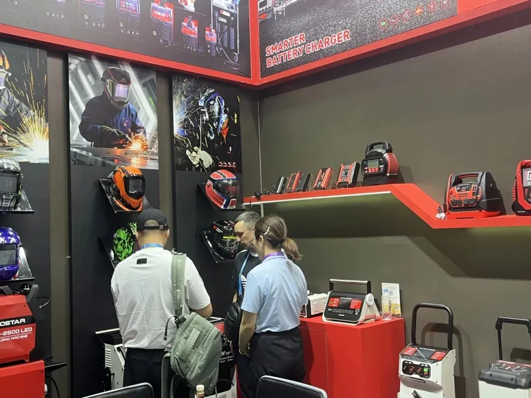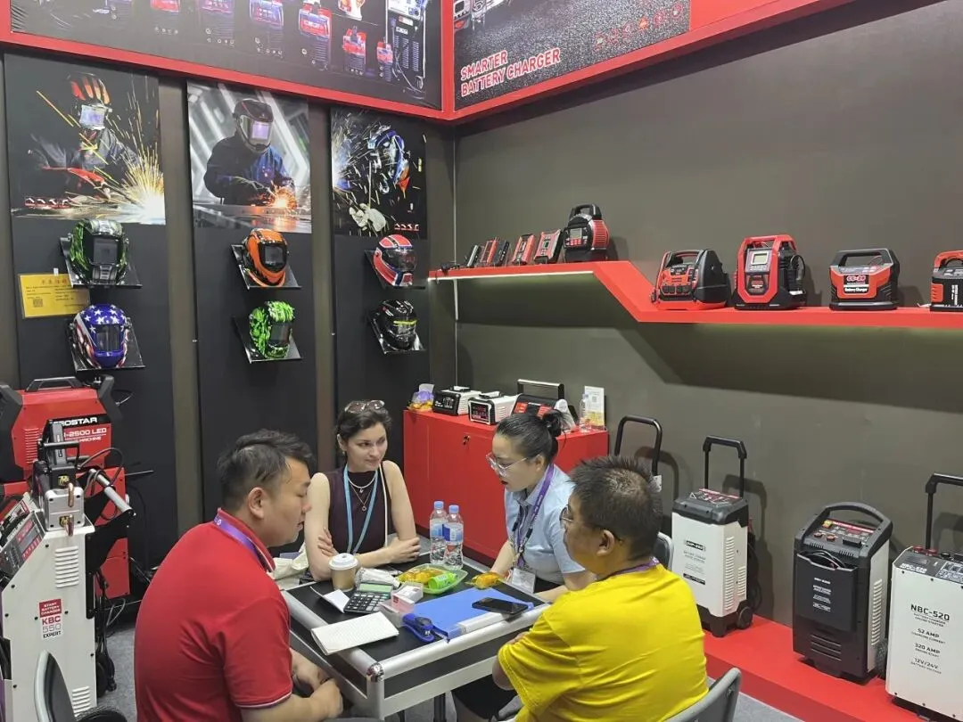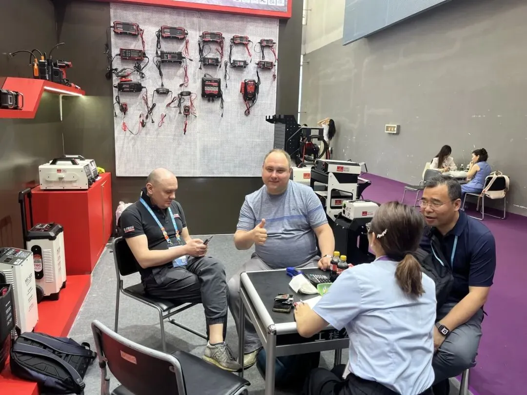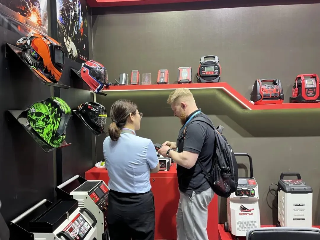 智能充电器、应急启动电源、工业级储能设备全线展出。全系列产品凭借稳定性能、多重安全防护、完善国际认证,以及适配全球车型的通用方案,成为采购商重点关注品类。展会期间,海内外客商接连到访,深入探讨产品参数、供货周期、定制需求与长期代理合作,硬核产品力赢得全球客商广泛认可。