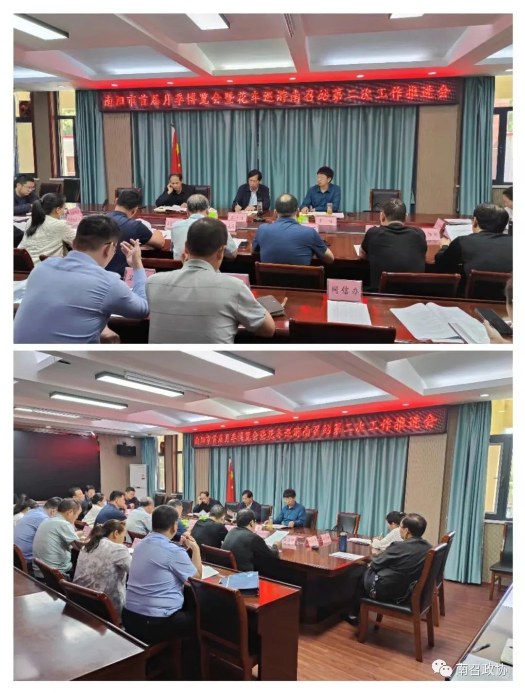 5月13日上午,县政协主席苏自清、县政府副县长冀豫主持召开南阳市首届月季博览会暨花车巡游南召站工作推进会,听取各保障部门工作准备情况,并对巡游期间安保维稳、交通管控、应急处置、沿线值守、宣传报道等工作进行安排部署。