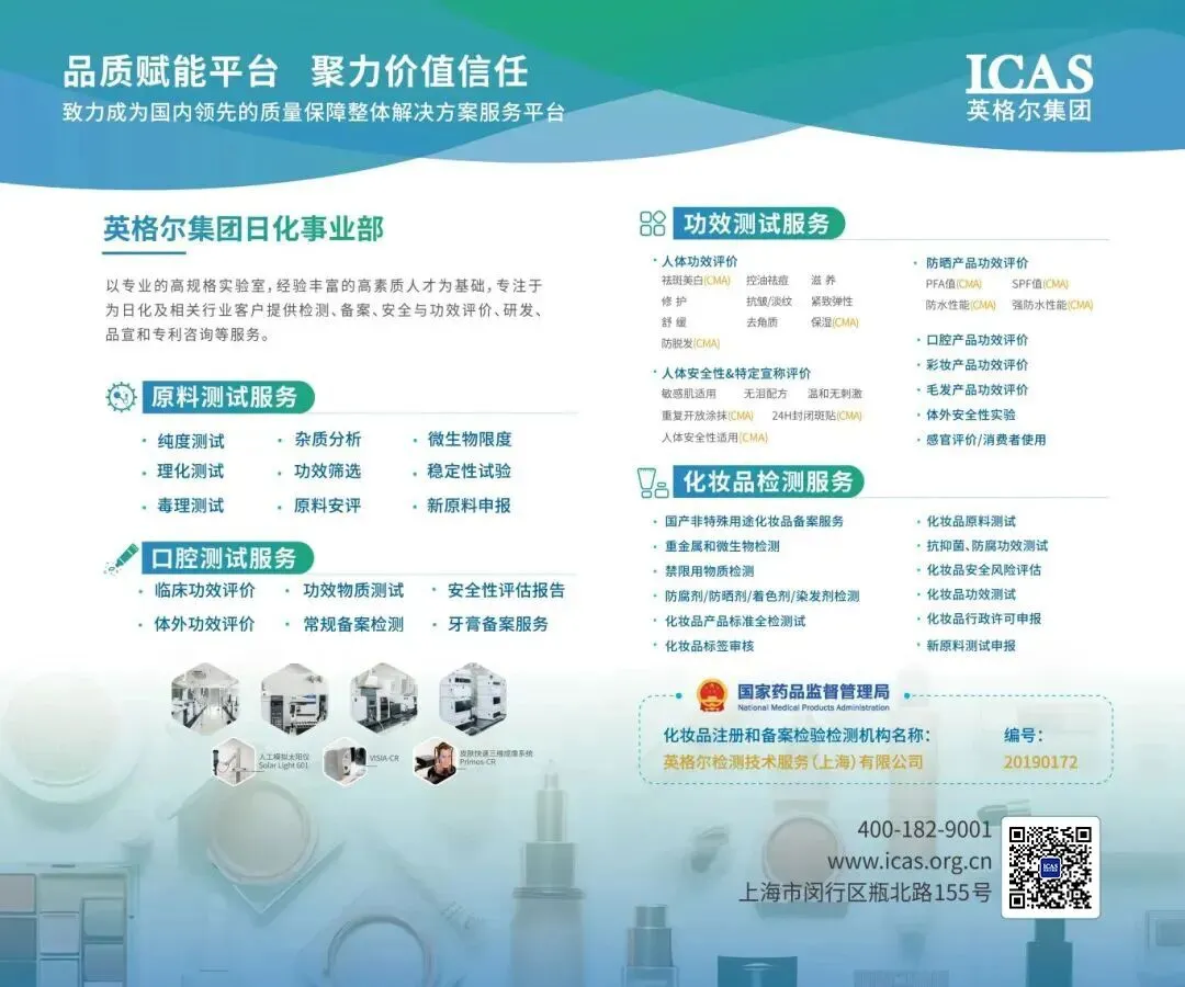 其中,【全球科技】将重点赋能产业源头创新,以N6创新原料、检测馆为核心的馆区,将汇聚100+全球功效原料、基础原料企业,配方实验室、检验检测及配套服务商,通过展览、峰会、商贸对接等形式,助力原料企业贸易对接、高效转化。英格尔作为日化领域资深的检验检测机构,将亮相于N6号馆A03-1号展位。