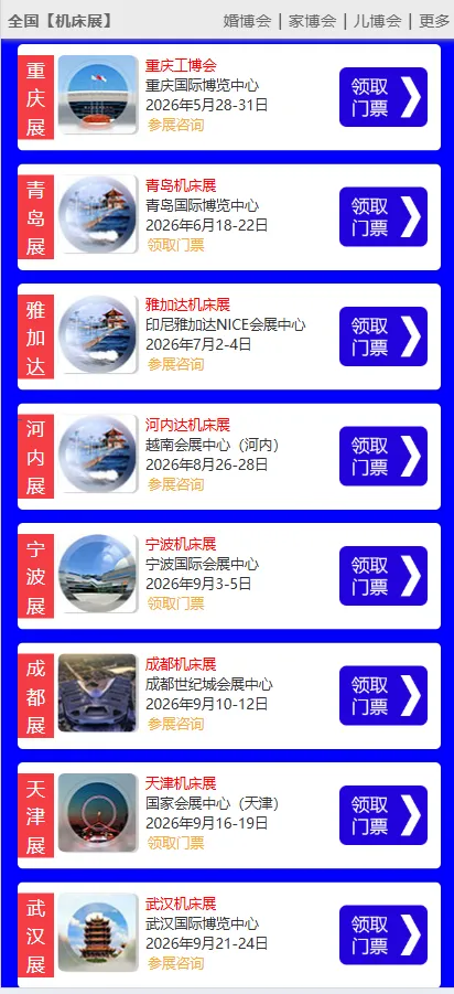 方法一:登录展会官网办理。访问“中国数控机床展览会”网站,点击“观众登记”。按提示填报相关信息,提交成功后,可自行打印参观证,也可在展会现场自助机或观众登记柜台打印参观证。
