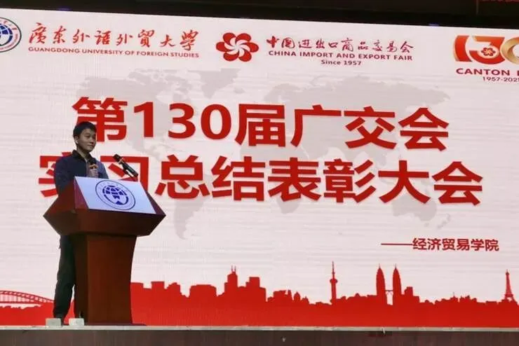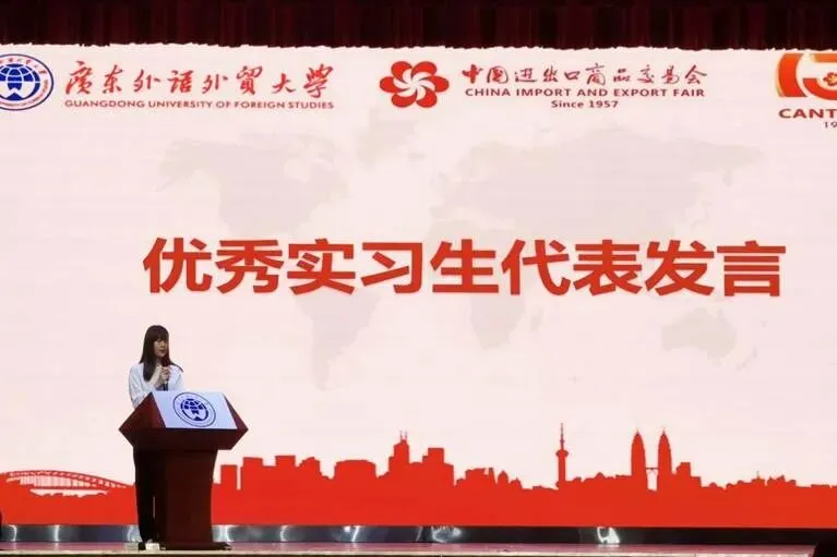 颁奖仪式结束后,优秀实习生代表国贸1903班的王璐瑶同学分享实习感言。在本次实习中,她体会到了实习的重要性,提高了人际沟通能力,明白了所肩负的任务和使命,并且从广交会开办的盛况中感受到了中国综合国力的强盛和对外贸易的繁荣发展。