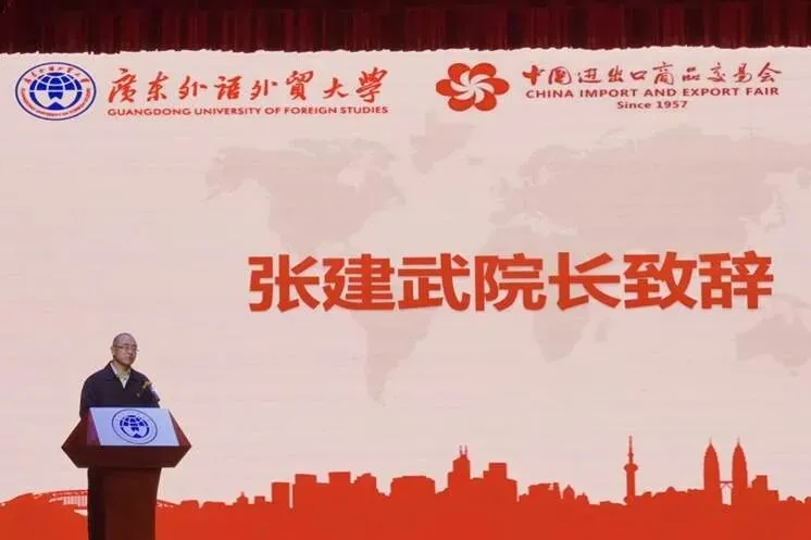 随后,经贸学院院长张建武上台致开场辞并对本次广交会的总体情况进行了总结。其中,他提到了今年广交会的非同寻常之处:首次采用线上线下融合的形式,在守住防疫底线的基础上揭开新的一页。他还强调了这次广交会实习的意义重大,同学们在其中培养了国际视野、责任担当、服务意识和专业素养,都有所收获、有所成长。