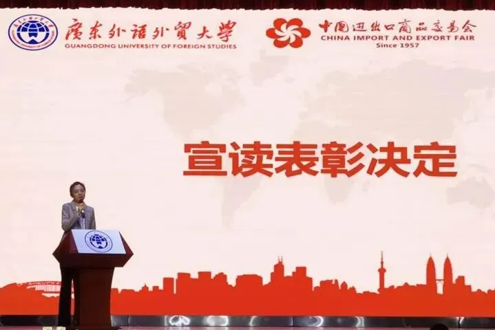 在领导和嘉宾致辞与讲话后,总结大会进行到了表彰环节。此次广交会涌现了一大批优秀实习生,展现了我院学子吃苦耐劳的优良风貌。由经贸学院党委副书记陈思宣读此次广交会实习表彰决定,授予了85位同学“优秀实习生”的名誉称号。经贸学院国家级实习基地负责人何元贵教授、经贸学院唐静副院长、经贸学院党委陈思副书记以及广东南油对外服务有限公司常务副总经理纪薇女士给此次荣获“优秀实习生”称号的代表们颁奖。