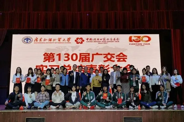 2021年11月30日晚18:30,经济贸易学院第130届广交会实习总结表彰晚会在南校区学生活动中心二楼多功能会议厅如期举行。出席的嘉宾有:中国对外贸易中心人事处培训发展事务科科长司徒毅、科员蓝冬梅,广东南油对外服务有限公司常务副总经理纪薇、部门经理韩洁瑜。同时,出席总结表彰大会的领导老师们有:经贸学院院长张建武,经贸学院国家级实习基地负责人何元贵,经贸学院副院长肖奎喜、唐静,经贸学院党委副书记陈思,经贸学院辅导员龙世邦、张自勉、黄星、缪冠中、尹浩楠、许耿彬、杨剑光。