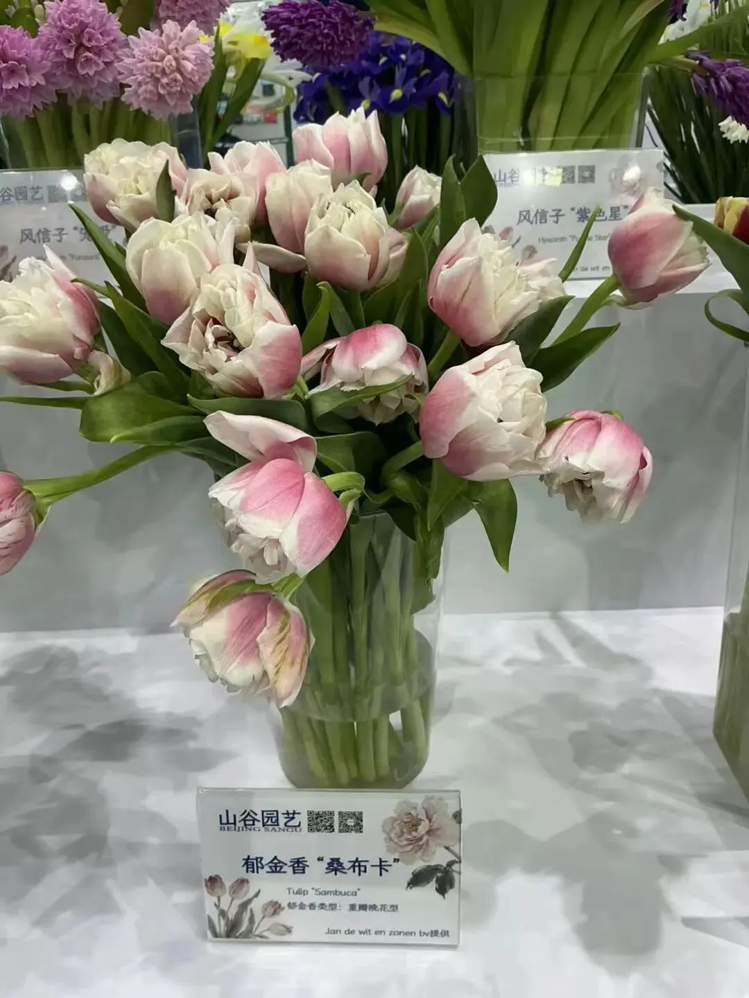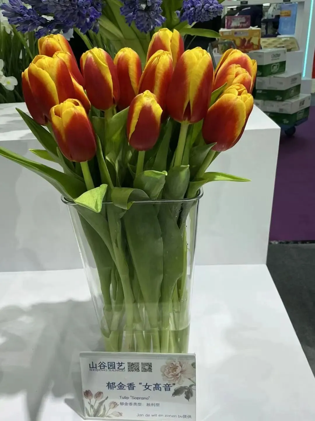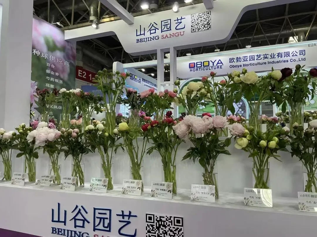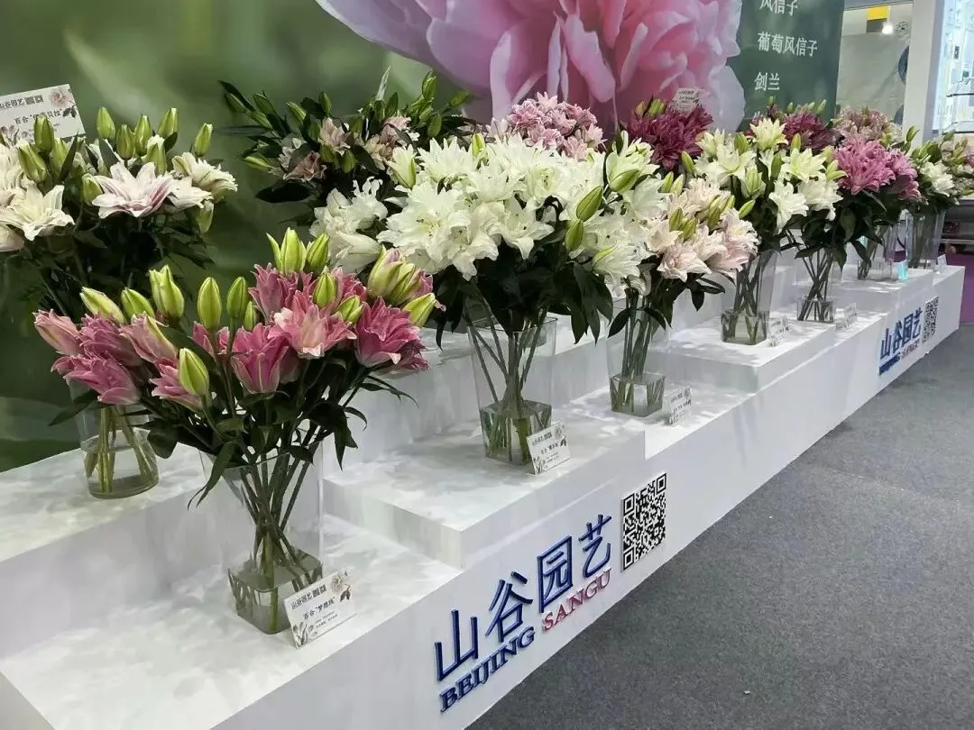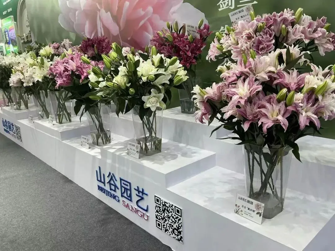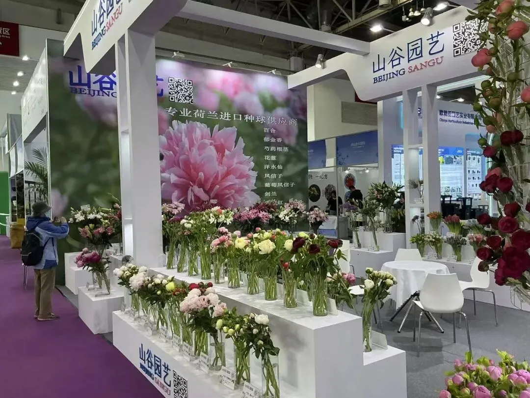 2026年4月中国国际园艺博览会期间北京山谷园艺有限公司展出百合品种20个、芍药38个、郁金香9个、风信子6个、花葱6个、鸢尾6个