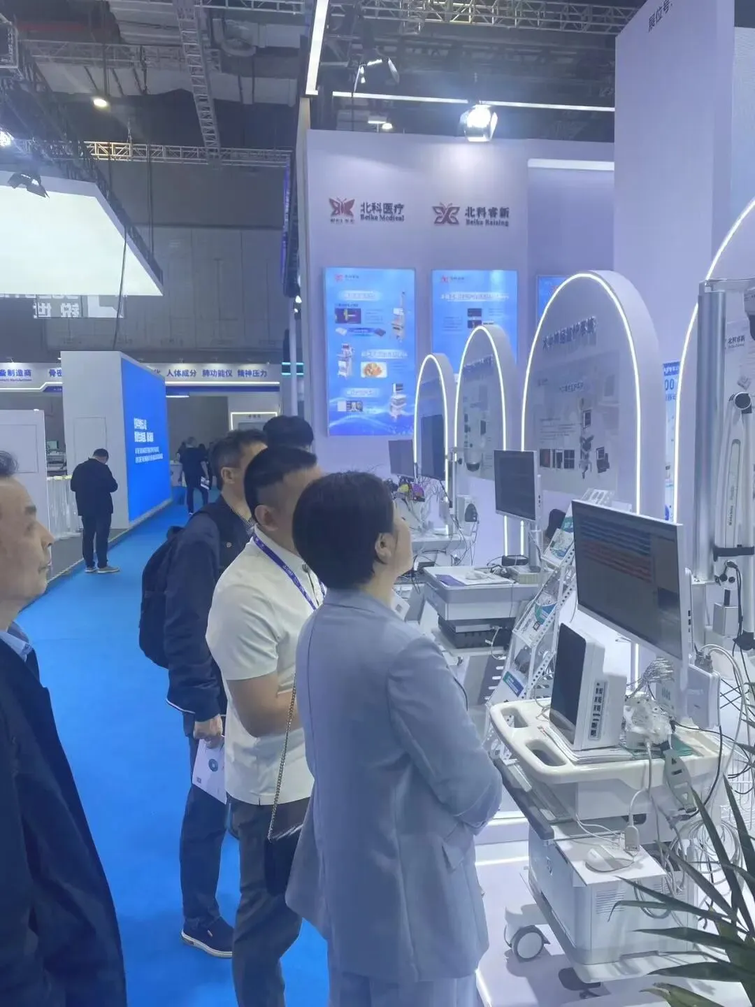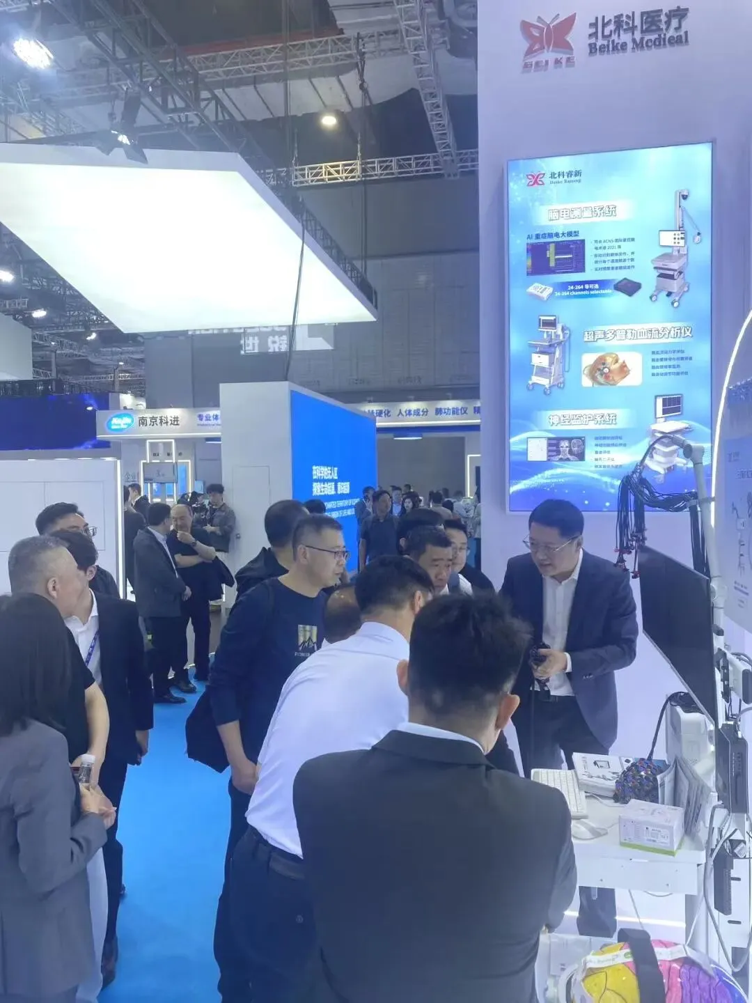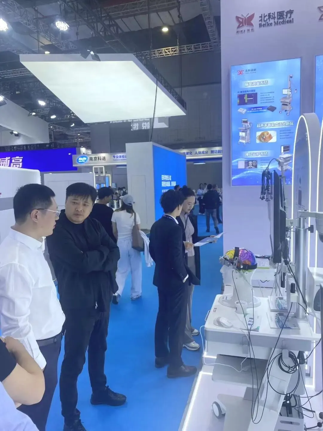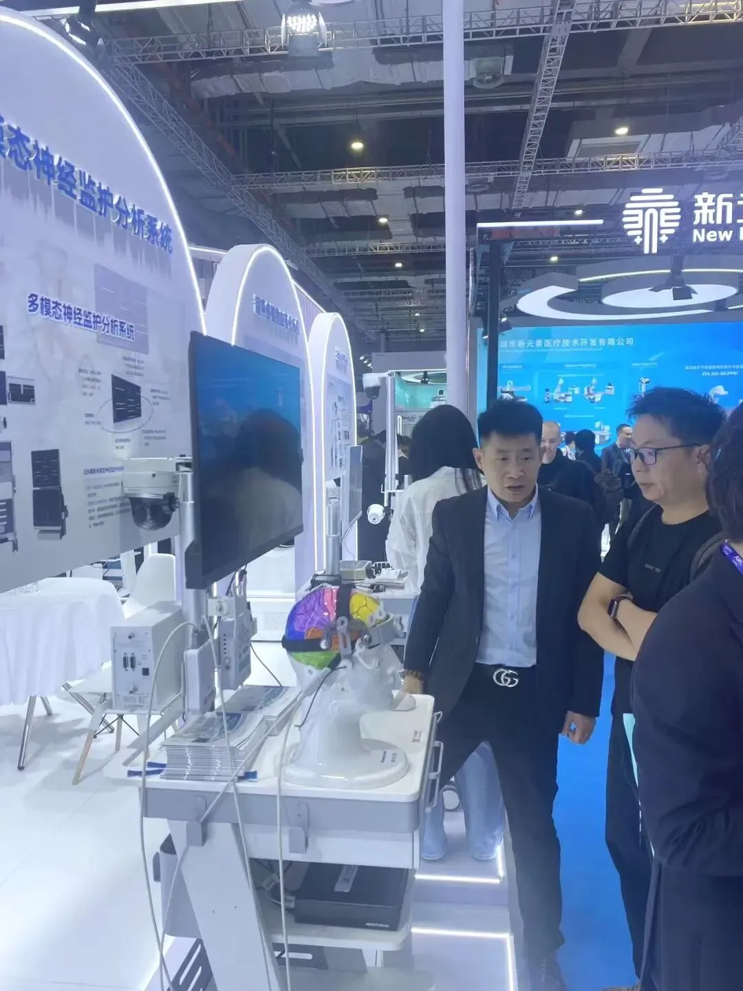 展会现场,北科睿新展台人气持续高涨,吸引了众多来自国内外医院、高校科研机构及行业企业的专家学者驻足交流。多位神经科学、重症医学及脑机接口领域的专业人士对北科睿新产品在多模态融合监测、智能预警及闭环调控方面的创新能力给予了高度评价,并就未来在临床应用及科研合作中的深度融合展开了广泛探讨。