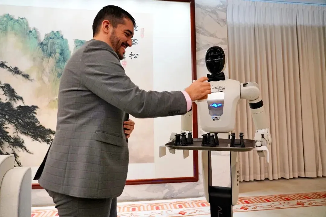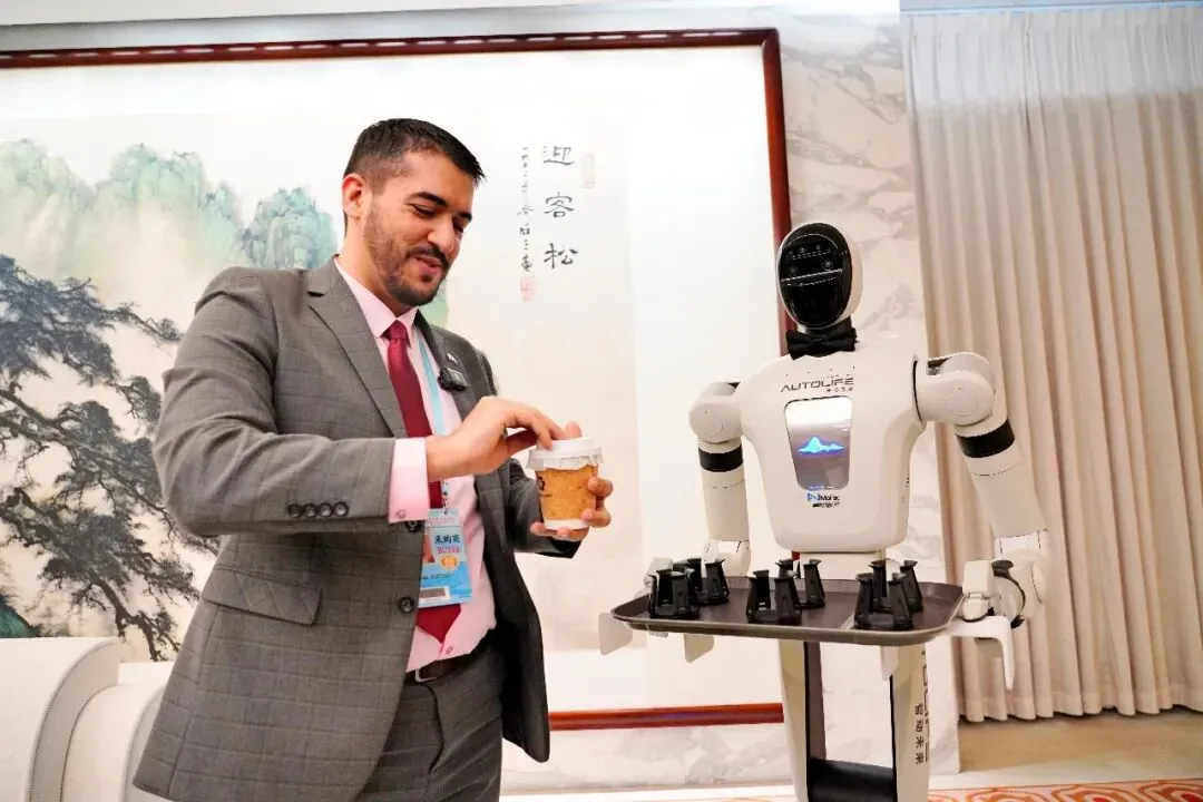Osama表示,机器人配送奶茶非常稳定,也很智能,感谢广交会这一贴心的安排。