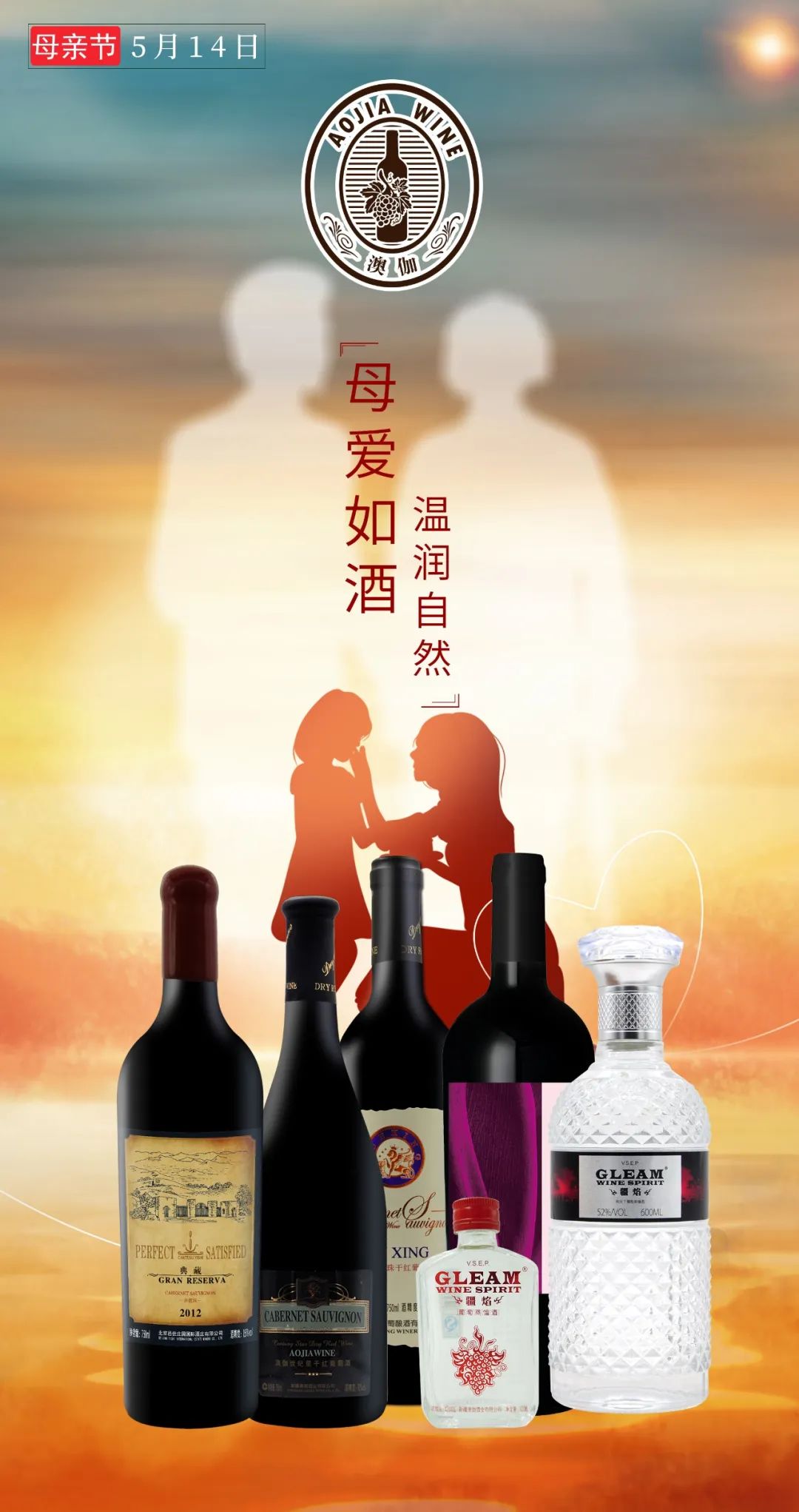 今天是母亲节,无论你多忙,都要祝福妈妈,这个母亲节,悄悄给她一个惊喜,准备几句暖心的话语,带上一瓶好酒,回家吃饭,陪妈妈一同品味醇香优雅,享受点滴微醺时刻,诉说你对她的爱,愿妈妈幸福安康,永远美丽。
