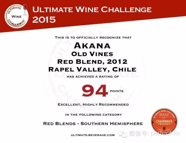 亚卡纳老藤红葡萄酒,以94分的高分荣获2015年葡萄酒终极挑战赛 "主席特别奖杯"!